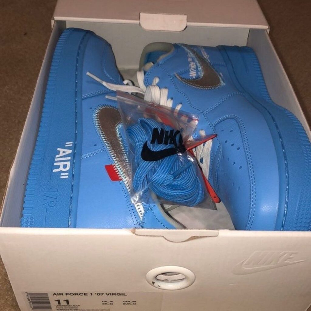 The Off-White x Nike Air Force 1 “MCA” is another highly limited colorway of the iconic silhouette by Virgil Abloh. Released in celebration of Abloh’s career retrospective exhibit at the Museum of Contemporary Art in Chicago, the “MCA” colorway features the same leather construction of the coveted “ComplexCon” and “MoMA” versions of the Off-White x Air Force 1. This time the silhouette receives an eye-catching bright blue hue across the upper and sole, highlighted by metallic silver Swooshes and a red tab and zip tie. The Off-White x Nike Air Force 1 “MCA” released in very limited quantities in June 2019.