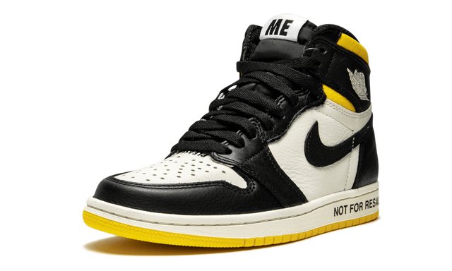 The Air Jordan 1 “Not For Resale – Maize” is one of two versions of the special graphic edition of Michael Jordan’s first signature shoe that encourages users to wear their pairs. The unique colorway features numerous messages across the upper that provide tongue-in-cheek references to sneaker culture, including “NOT FOR RESALE” on the midsole and “NO PHOTOS,” “PLEASE CREASE,” and “WEAR ME” across the upper. More statements are found on the interior, including “GENERAL RELEASE” and “NO L’s.” This colorway features a black, white, and yellow color palette. The Air Jordan 1 “Not For Resale – Yellow” released in December 2018