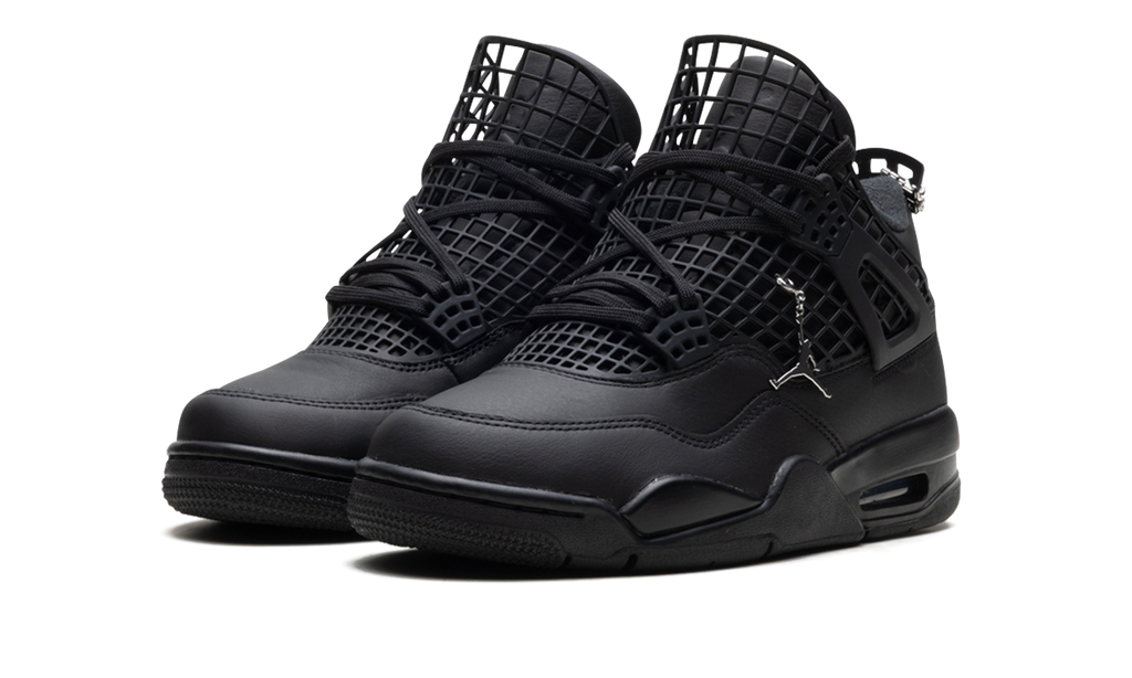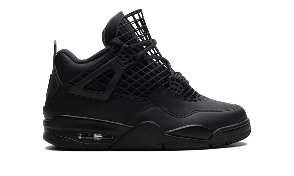 The Air Jordan 4 NET “Black” is a women’s version of Michael Jordan’s fourth signature shoe. The unique design of this AJ4 takes the basketball sneaker’s signature netting from the side panel and extends it across the front and tongue of the shoe. The all black Jordan 4 colorway also features sleek leather panels on the upper.