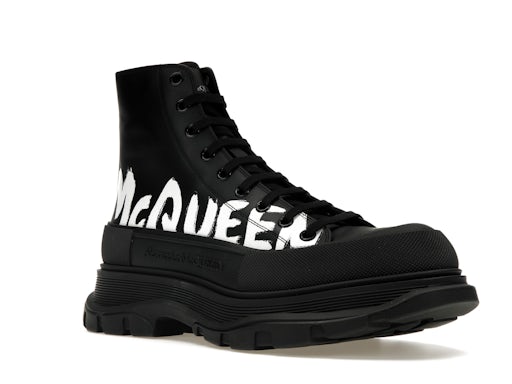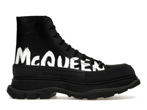 Be the first to review “Alexander McQueen Tread Slick Boot Leather Graffiti Black White”