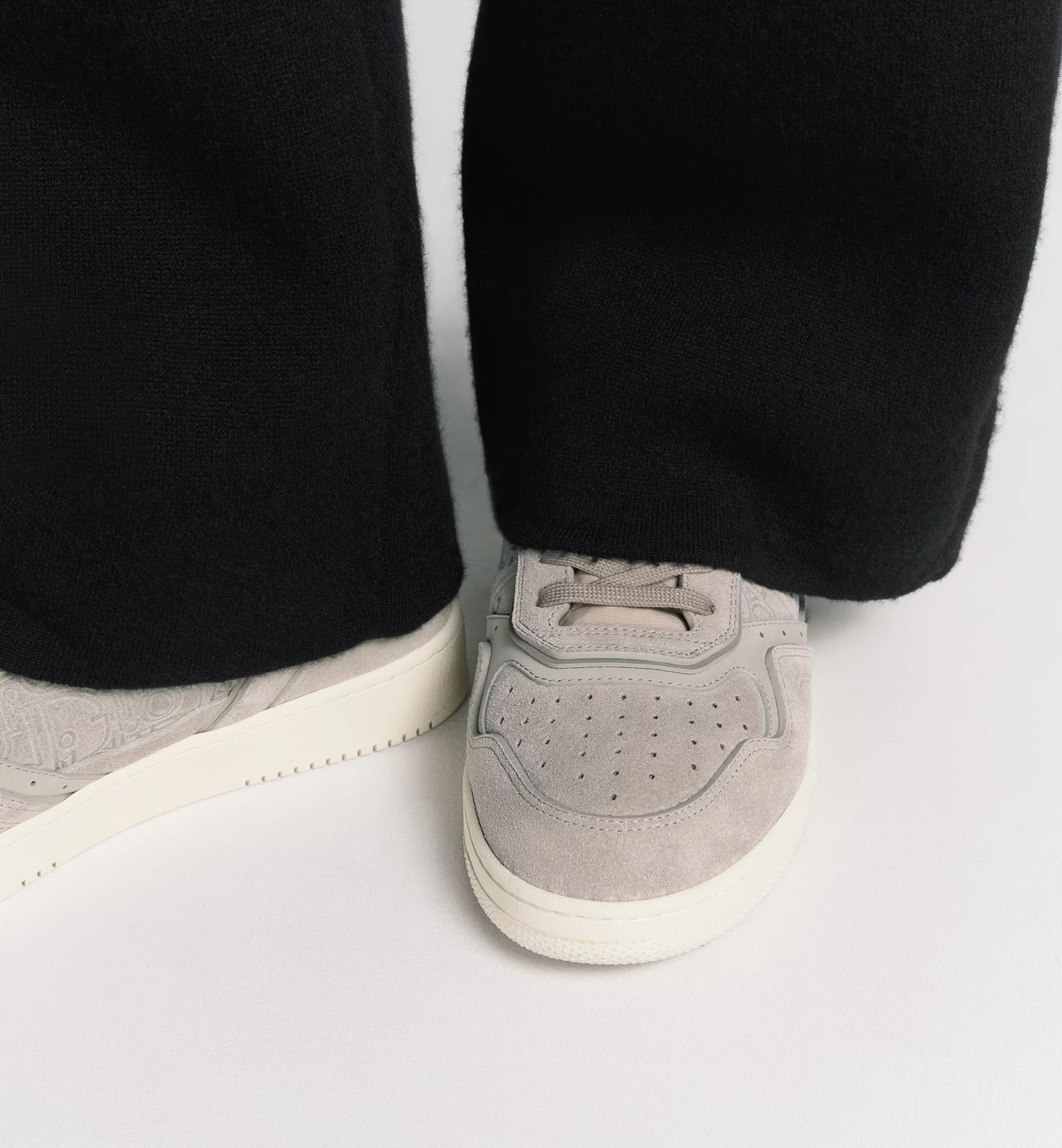 The B27 Uptown low-top sneaker is a new House essential. Crafted in gray suede, the style is adorned with tonal Dior Gravity suede panels. Displaying the virtuosity of the ateliers, the Dior Oblique motif is delicately embossed on suede leather. The sneaker is enhanced by CD Icon eyelets as well as numerous hallmark details on the cream rubber sole, tongue and back. The low-top sneaker will complement any Dior Icons outfit.