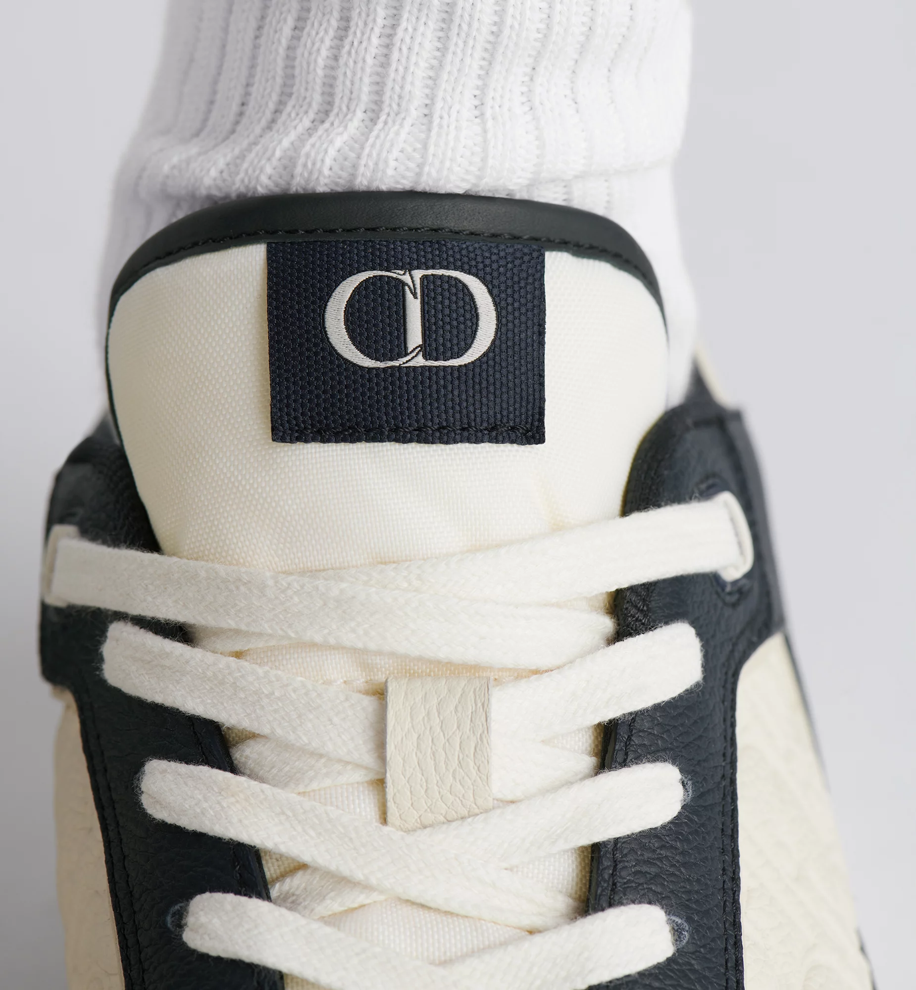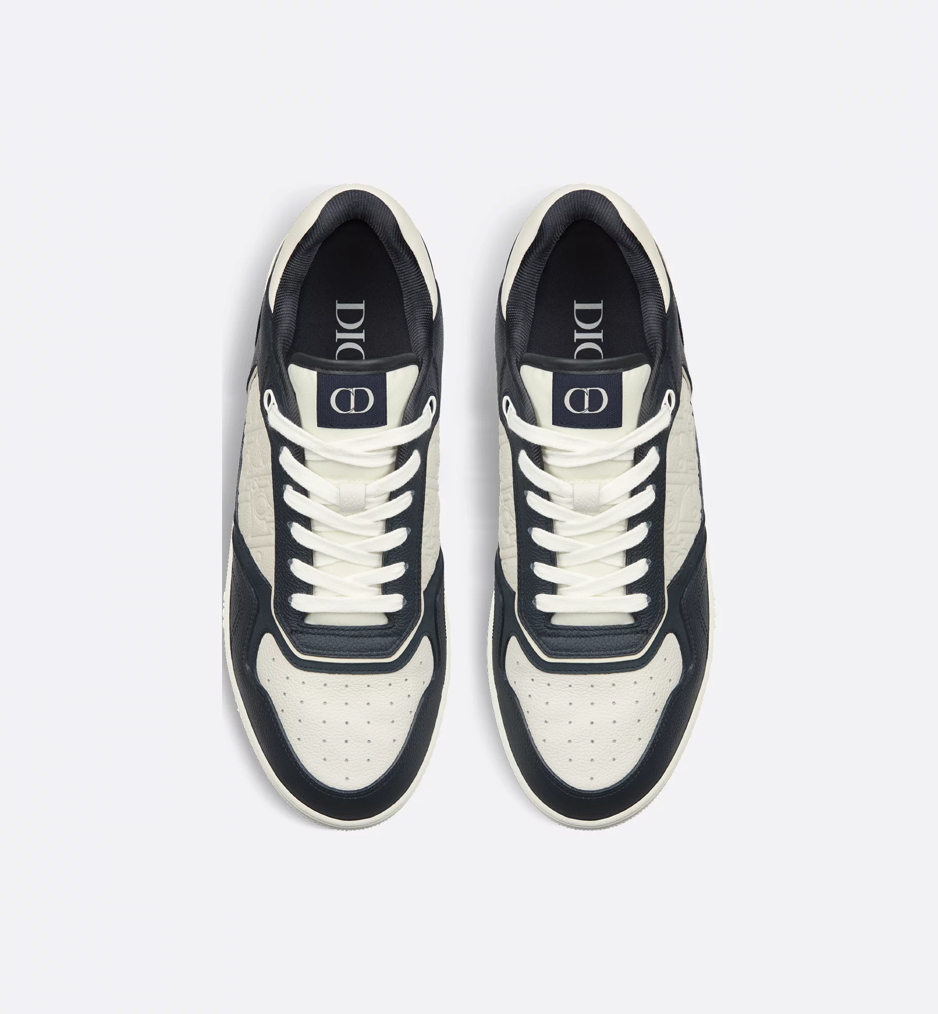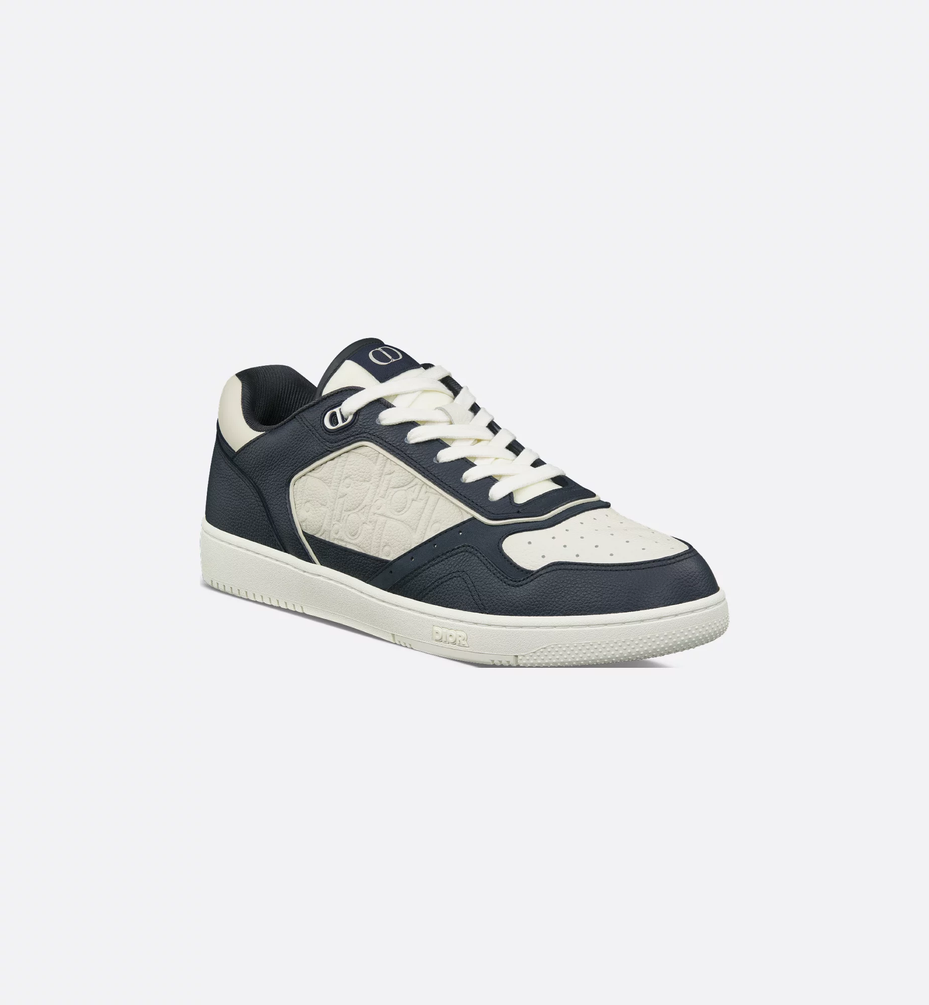 The B27 Uptown low-top sneaker is a House essential. Crafted in navy blue and white grained calfskin, the style exemplifies the virtuosity of the ateliers with panels in white Dior Gravity leather, which features the Dior Oblique motif delicately embossed on calfskin. The sneaker is enhanced by CD Icon eyelets as well as numerous hallmark details on the white rubber sole, tongue and back. The low-top sneaker will complement any favorite outfit.