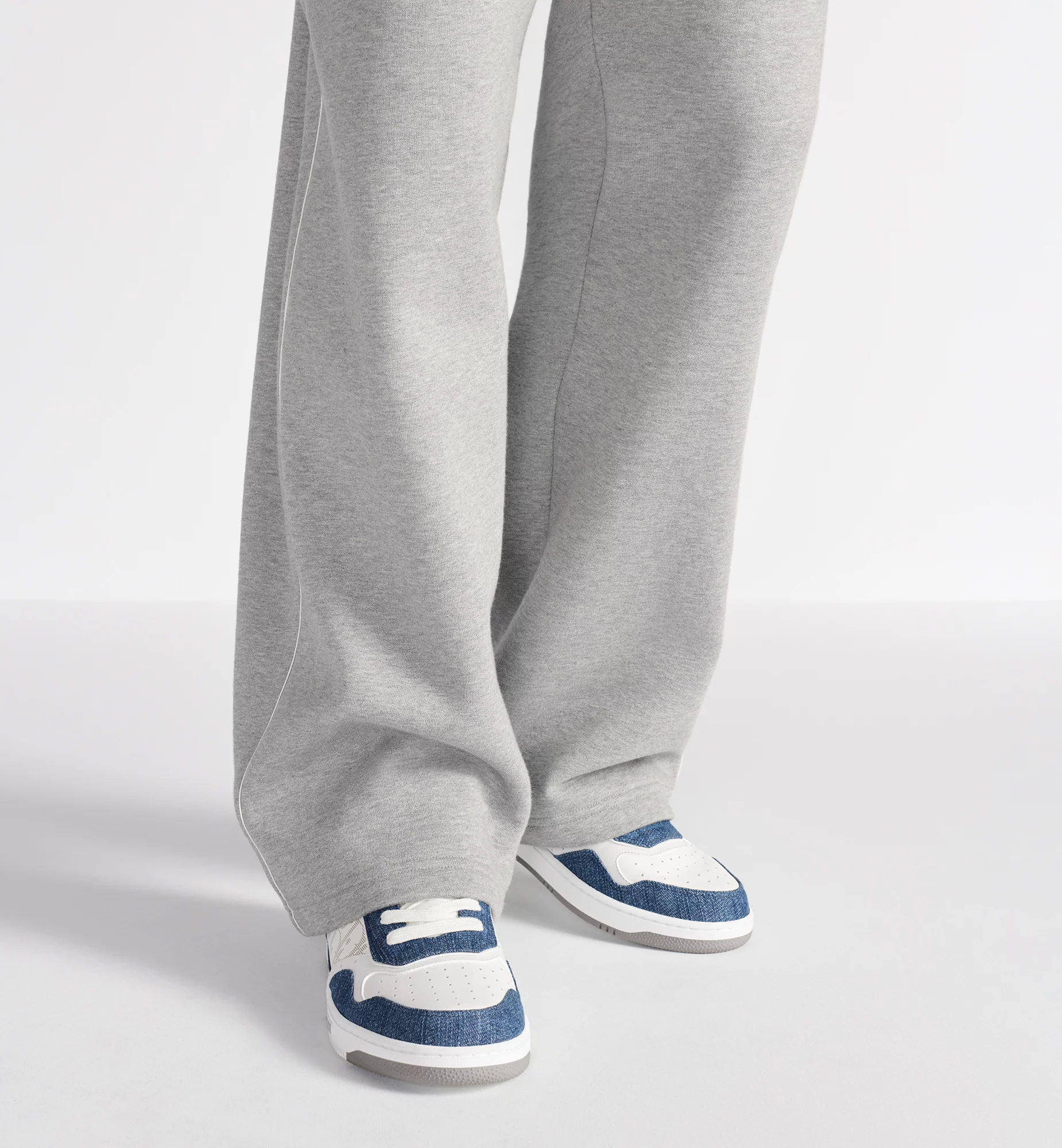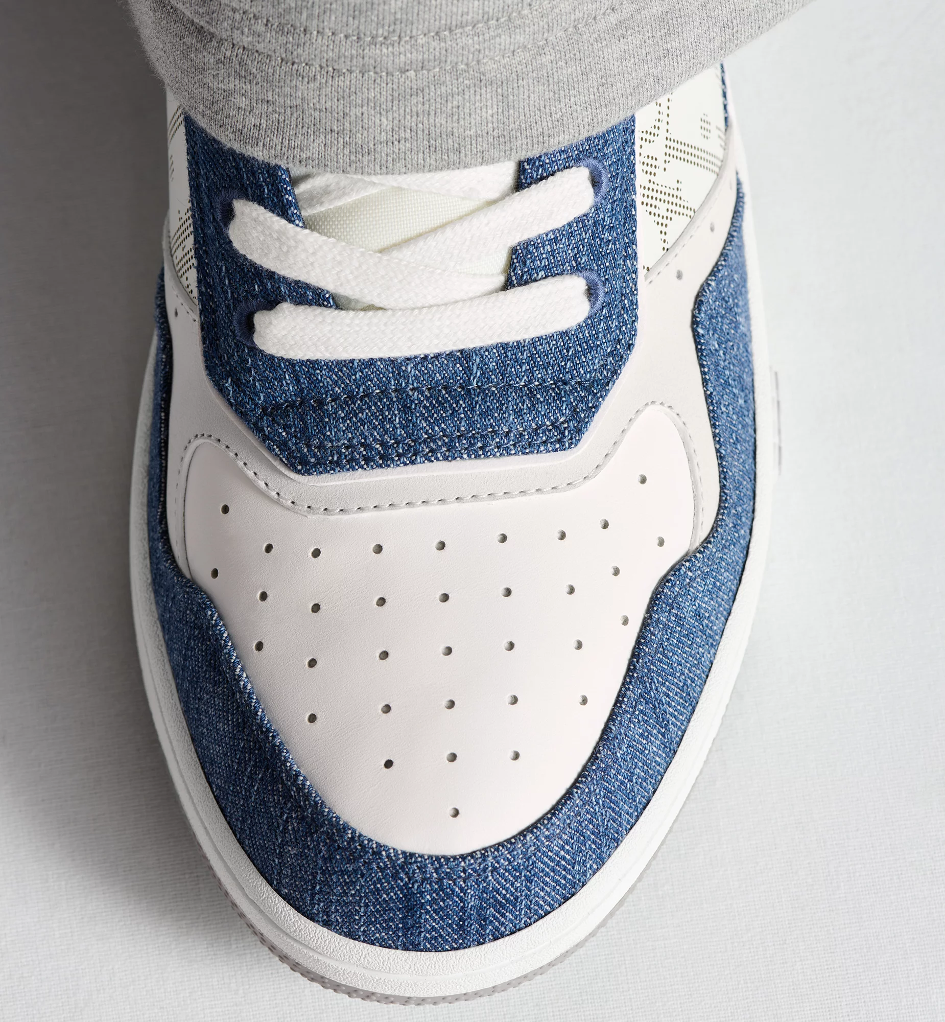 The B27 Uptown low-top sneaker is already a House essential. Crafted in white smooth calfskin and blue denim, the style is adorned with white Dior Oblique Galaxy leather panels on the sides. The sneaker is enhanced by CD Icon eyelets as well as various hallmark details on the two-tone rubber sole, tongue and rear. The low-top sneaker will elevate any favorite outfit.