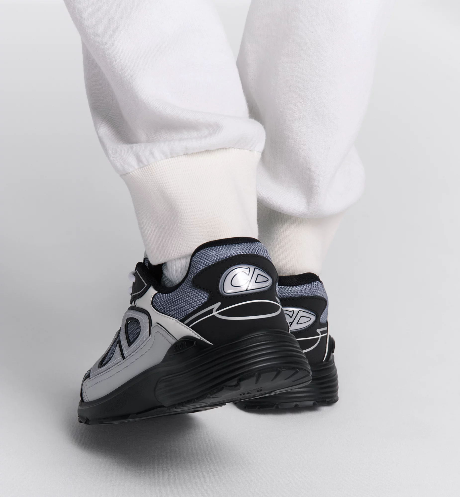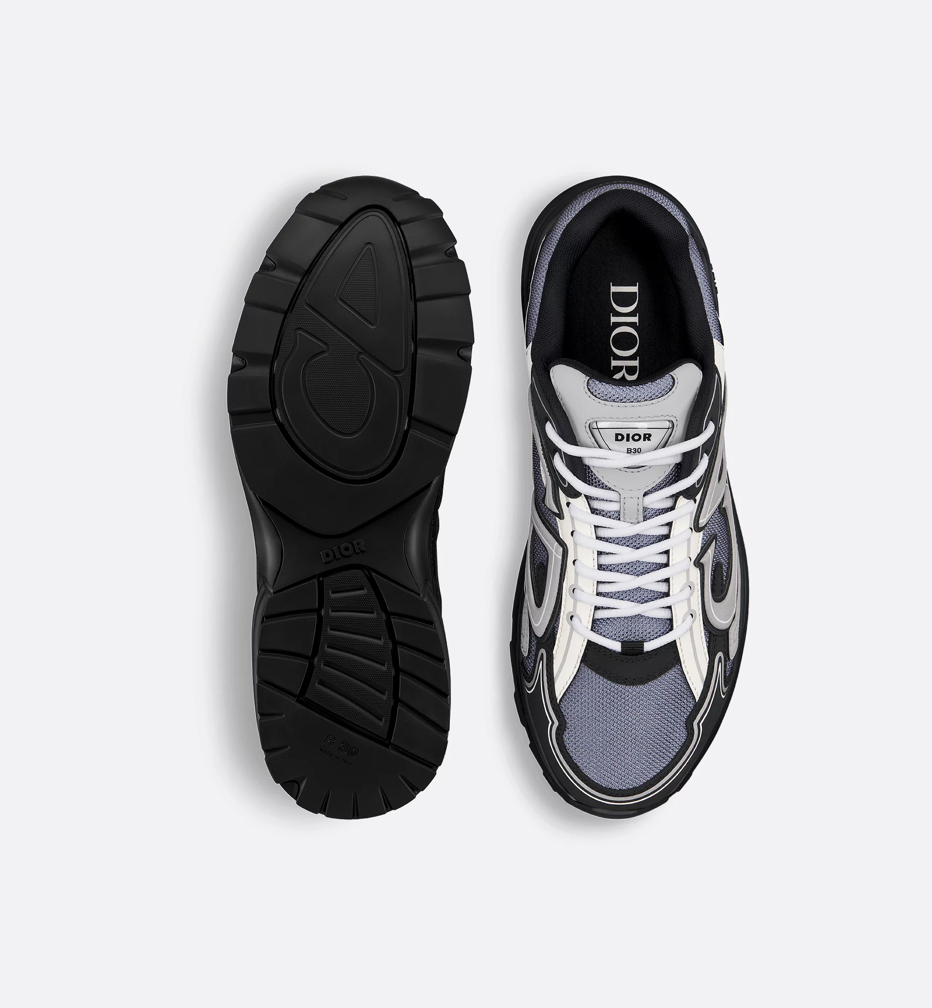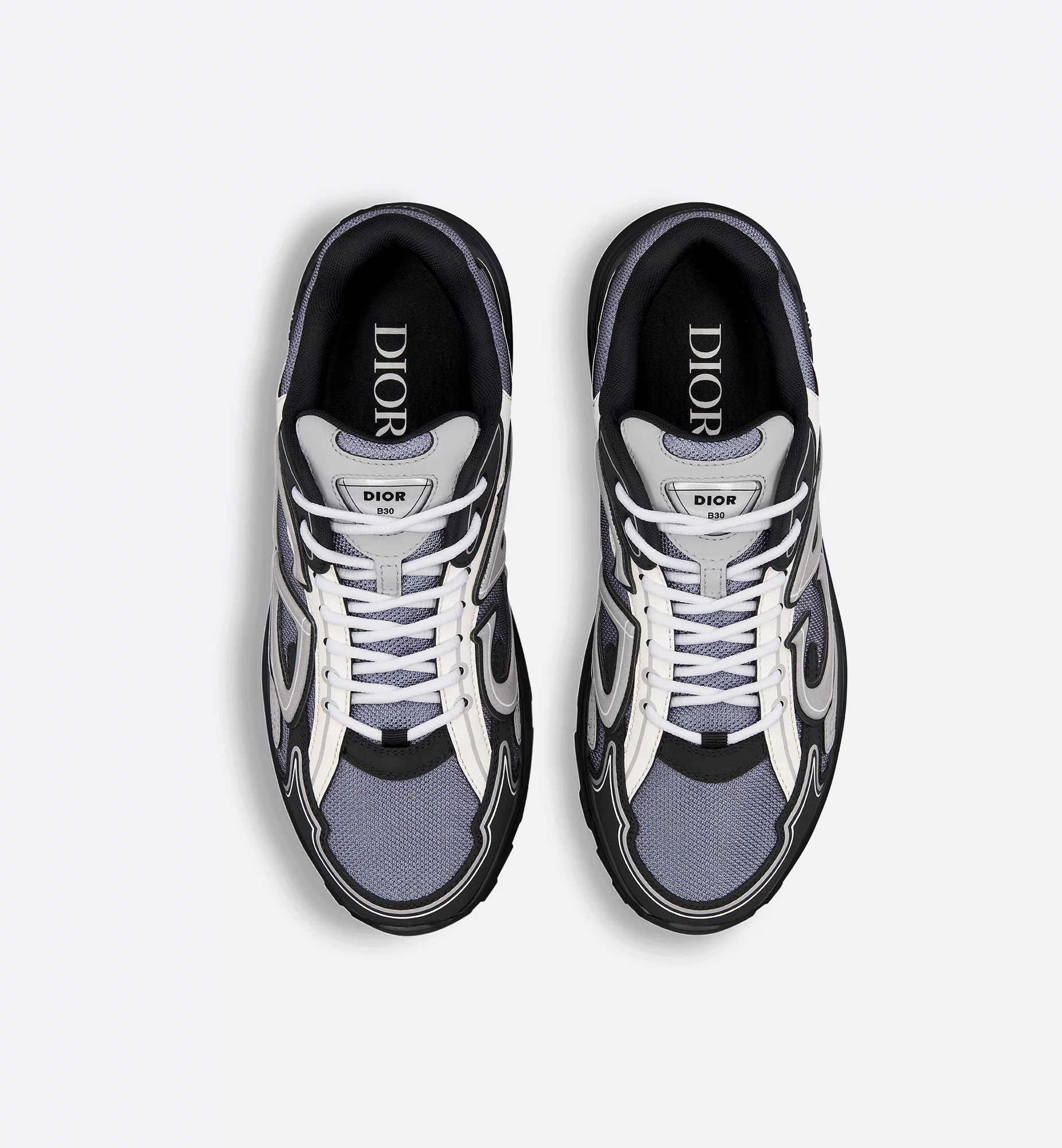 The B30Â Countdown low-top sneaker is a new House essential distinguished by its modern and sporty silhouette. Crafted in blue mesh and gray, white and black technical fabric, it is enhanced by a reflective CD30 signature with a graphic aesthetic. The B30Â Countdown also features silver-tone Dior B30 and CD30 signatures on the tongue and back. A sculpted and ultralightweight rubber sole spotlights various hallmark details while elastic on the interior provides optimal comfort. The B30Â Countdown sneaker will complete any casual outfit.