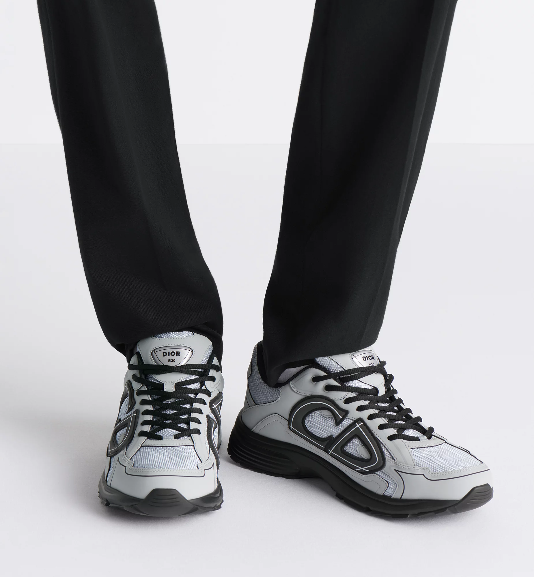 The B30Â Countdown sneaker is a new House essential, distinguished by its modern and sporty low-top silhouette. Crafted in gray mesh and tonal technical fabric, it is enhanced by a reflective black CD30 signature with a graphic aesthetic. The B30Â Countdown also features silver-tone Dior B30 and CD30 signatures on the tongue and back. A sculpted and ultralightweight rubber sole spotlights various hallmark details, while elastic on the interior provides optimal comfort. The B30Â Countdown sneaker will complete any casual outfit.