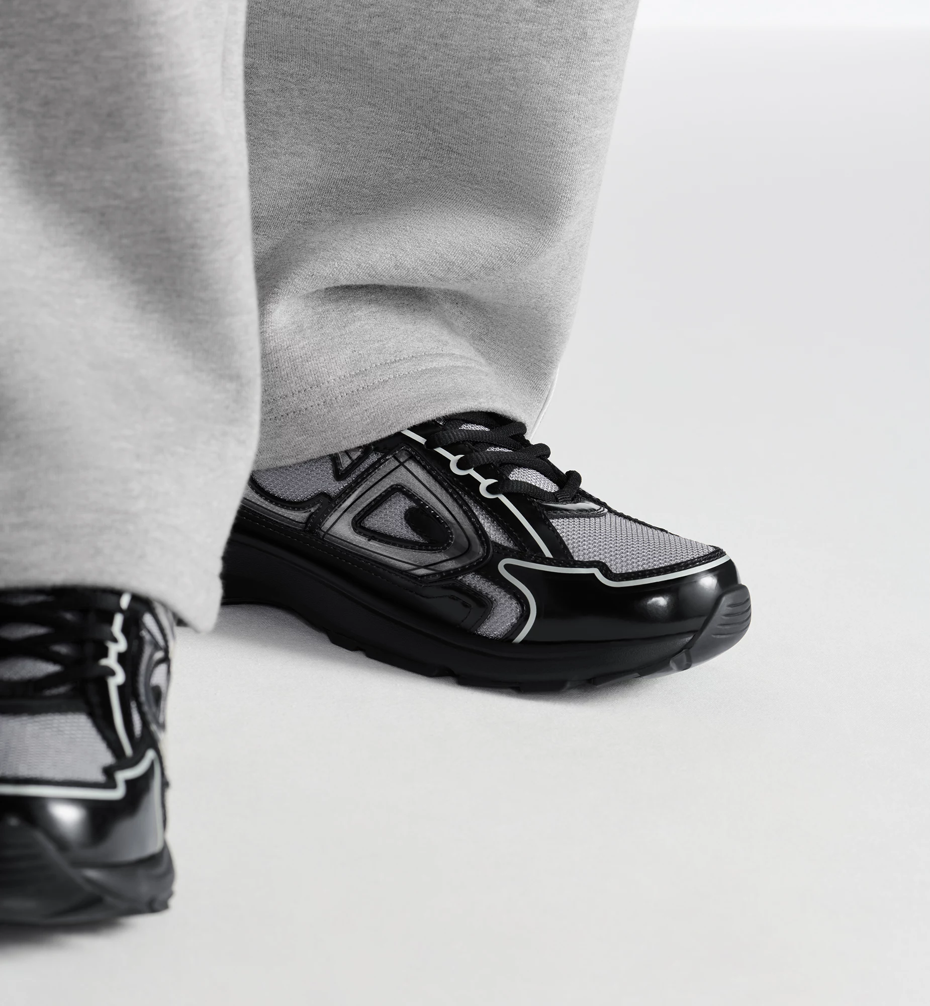 The B30Â Countdown low-top sneaker is a new House essential distinguished by its modern and sporty silhouette, offered in a new version combining technical savoir-faire and sophistication. Crafted in light gray technical mesh and black brilliant-finish technical fabric, it is enhanced by a transparent CD30 signature with a graphic twist. The B30Â Countdown also features silver-tone Dior B30 and CD30 signatures on the tongue and back. A sculpted ultralightweight rubber sole embellished with various hallmark details and an interior elastic band provide optimal comfort. The B30Â Countdown sneaker will complete any casual outfit.