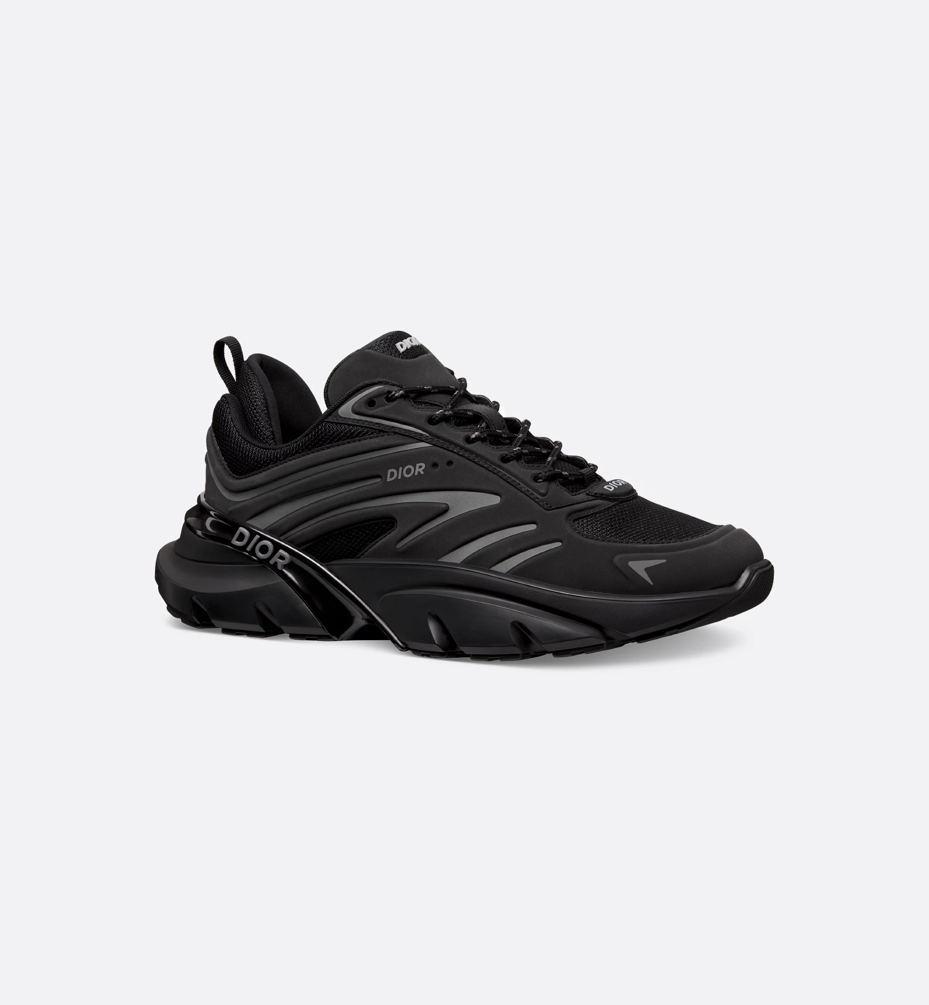 The B44 Blade sneaker is characterized by a boldly voluminous silhouette inspired by the 2000s. Constructed in black technical mesh, it features tonal technical fabric panels and a contrasting Blade insert on the sole that references the running universe. The top, heel and sides are accented by the Dior signature. Completed by two-tone laces and a support sock that emphasizes its athletic aesthetic, the sneaker will elevate casual looks with an ultramodern touch.