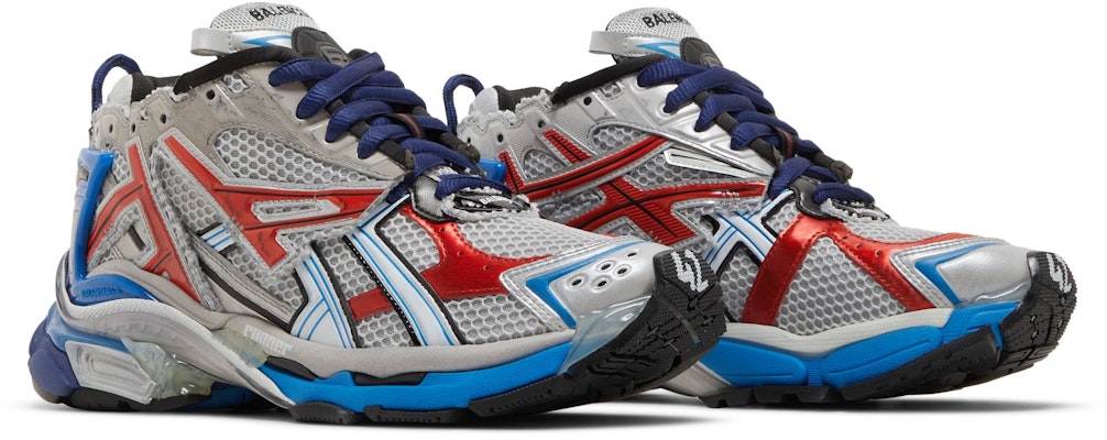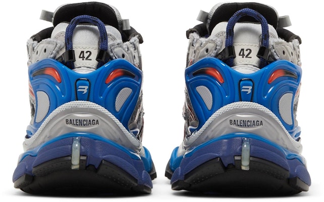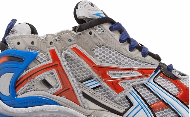 Step out in style with the Balenciaga Runner Sneaker in a trendy grey, red, and blue colorway. These sneakers by Balenciaga are the perfect blend of fashion and comfort, making them a must-have addition to your sneaker collection.