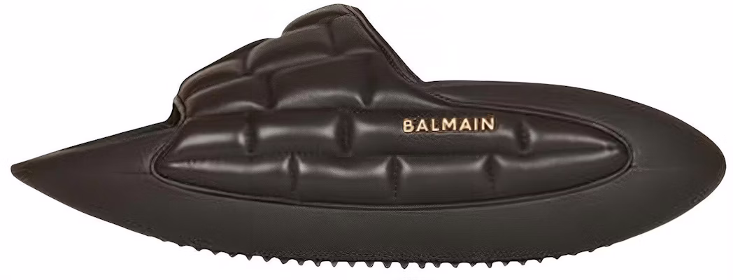 Indulge in the epitome of luxury and style with Balmain’s B‑IT Mules. Crafted from supple quilted black leather, these chic mules feature an elongated, pointed toe and a signature monogram buckle that exudes elegance. Their slip-on design and padded insole provide effortless comfort, making them the perfect statement piece to elevate any outfit. Elevate your wardrobe with these designer mules, showcasing both comfort and sophistication.