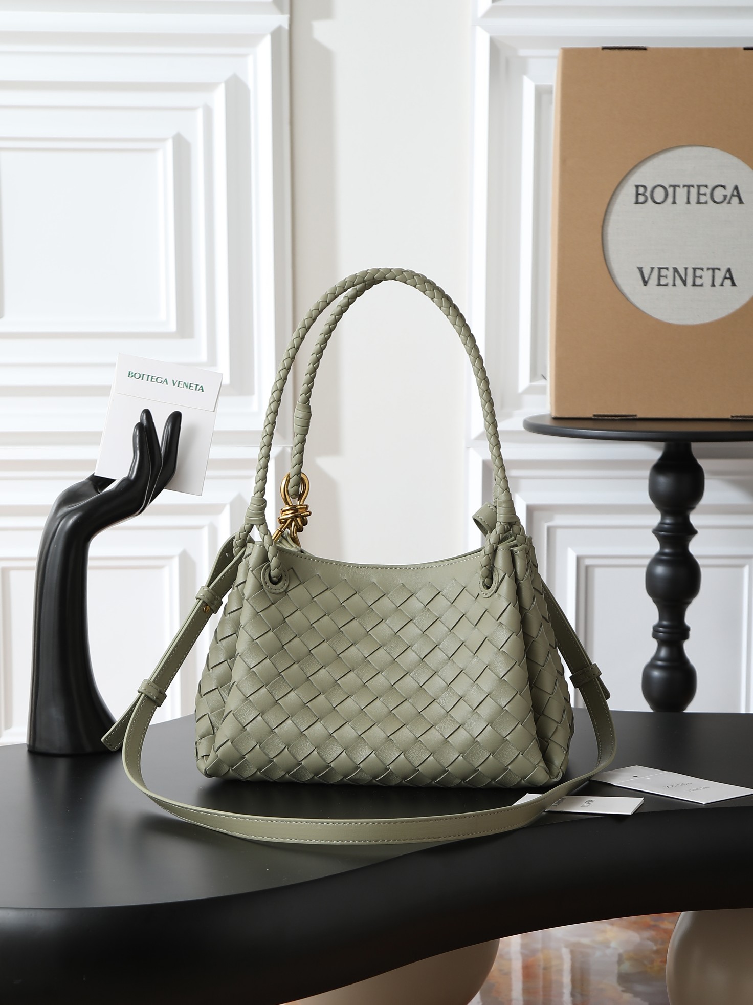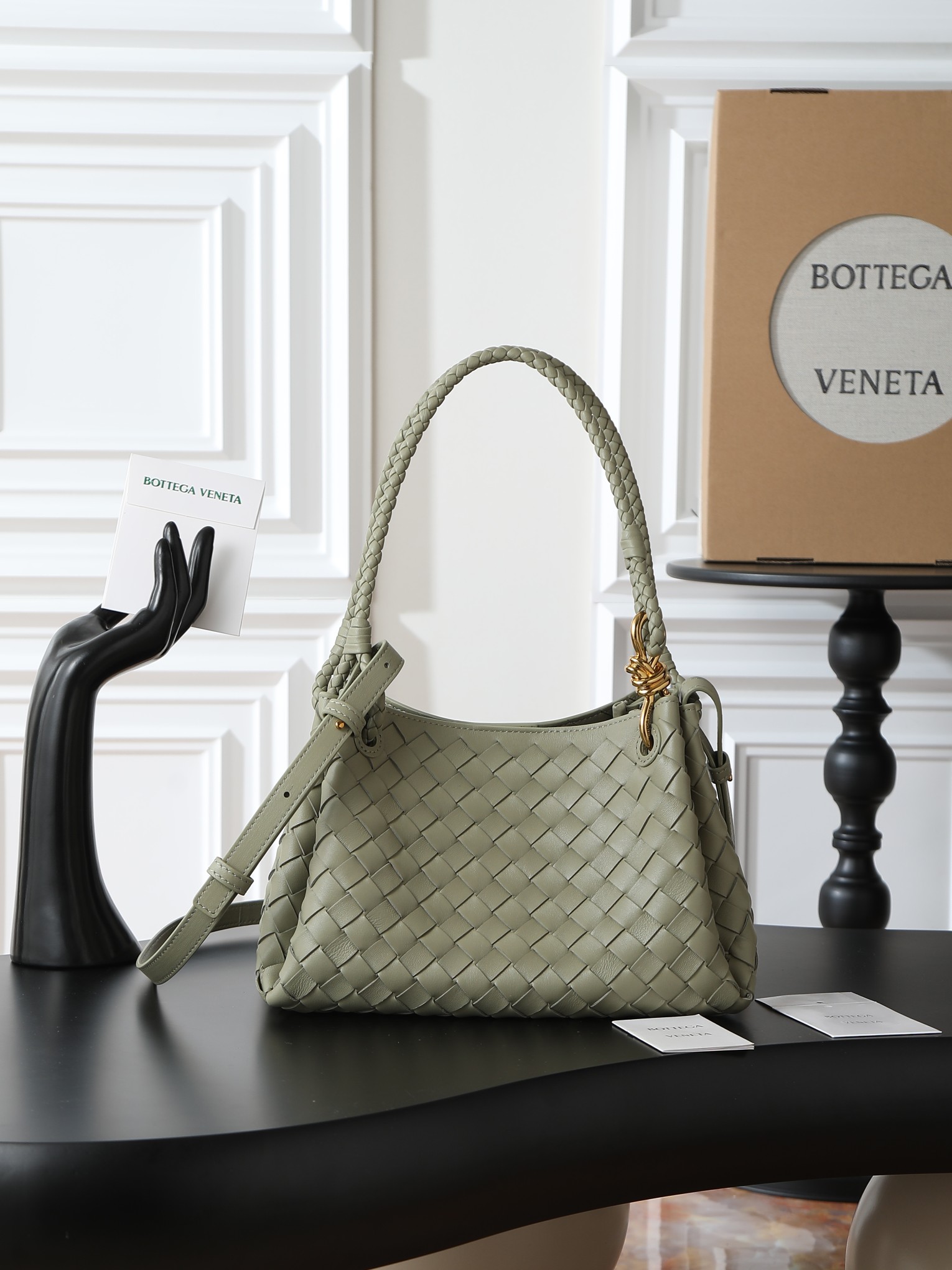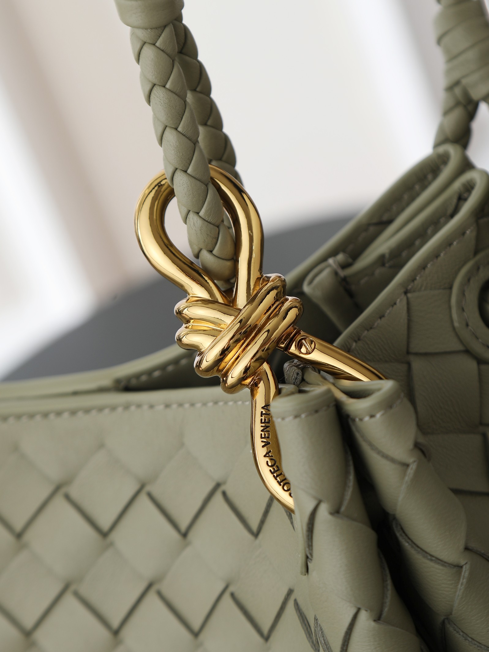 Made of soft and supple Nappa lambskin, featuring the classic Intrecciato weave and Knot details for a sophisticated vintage look.