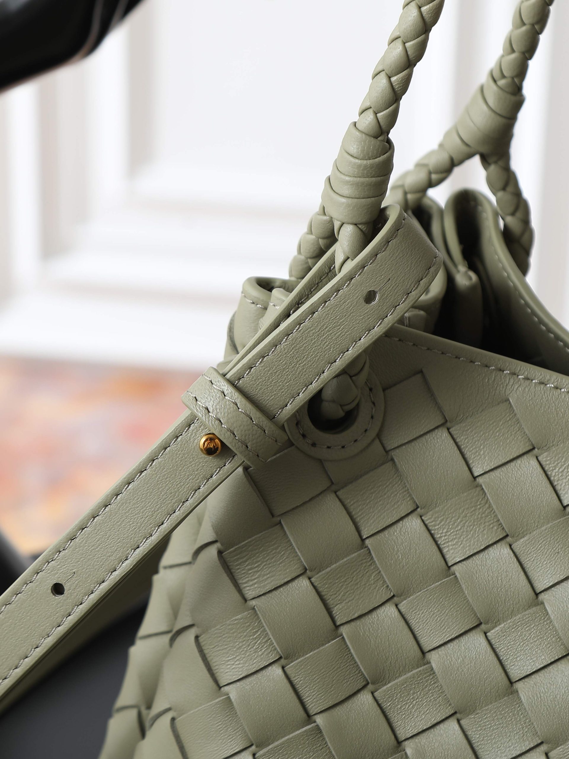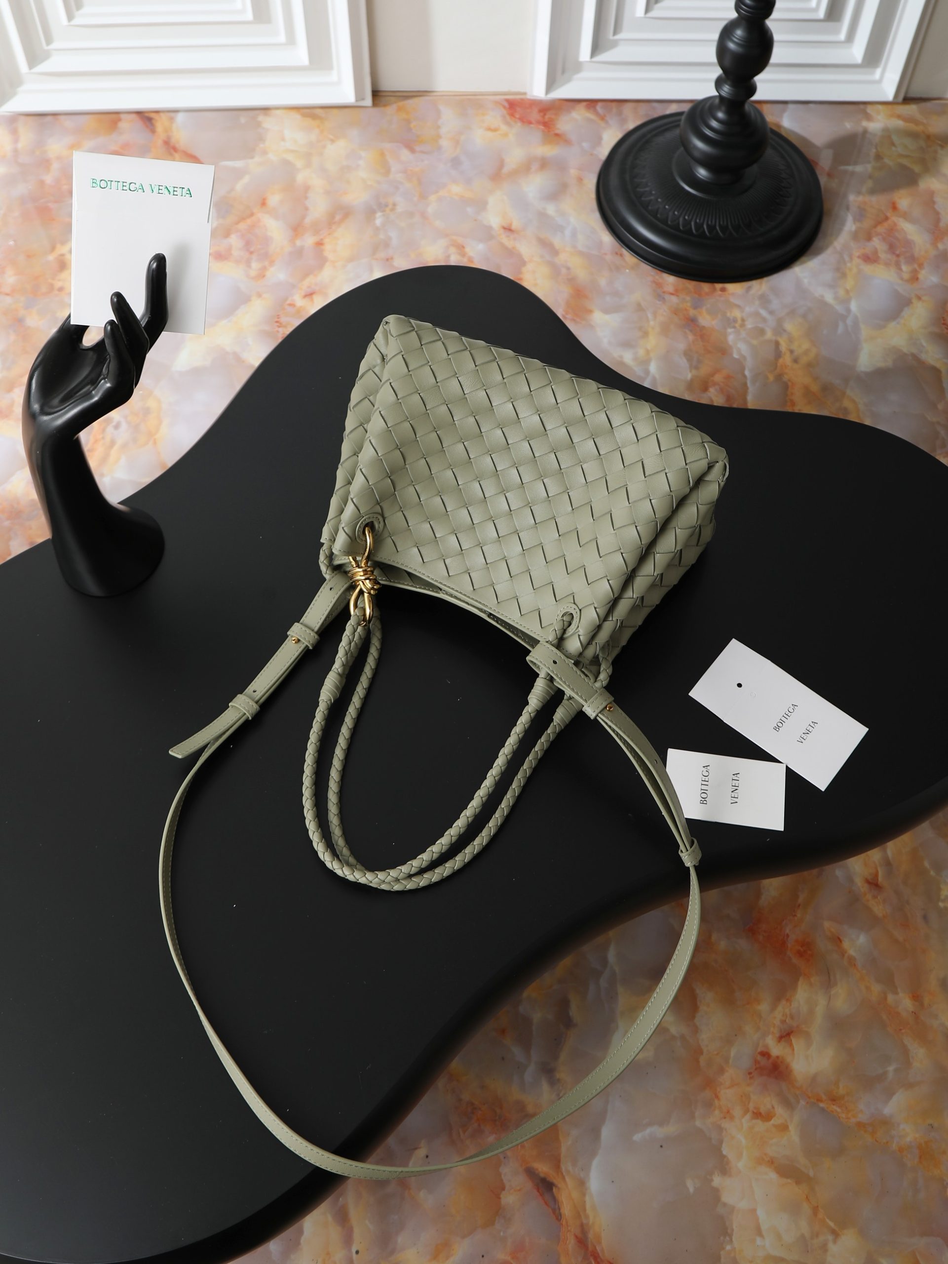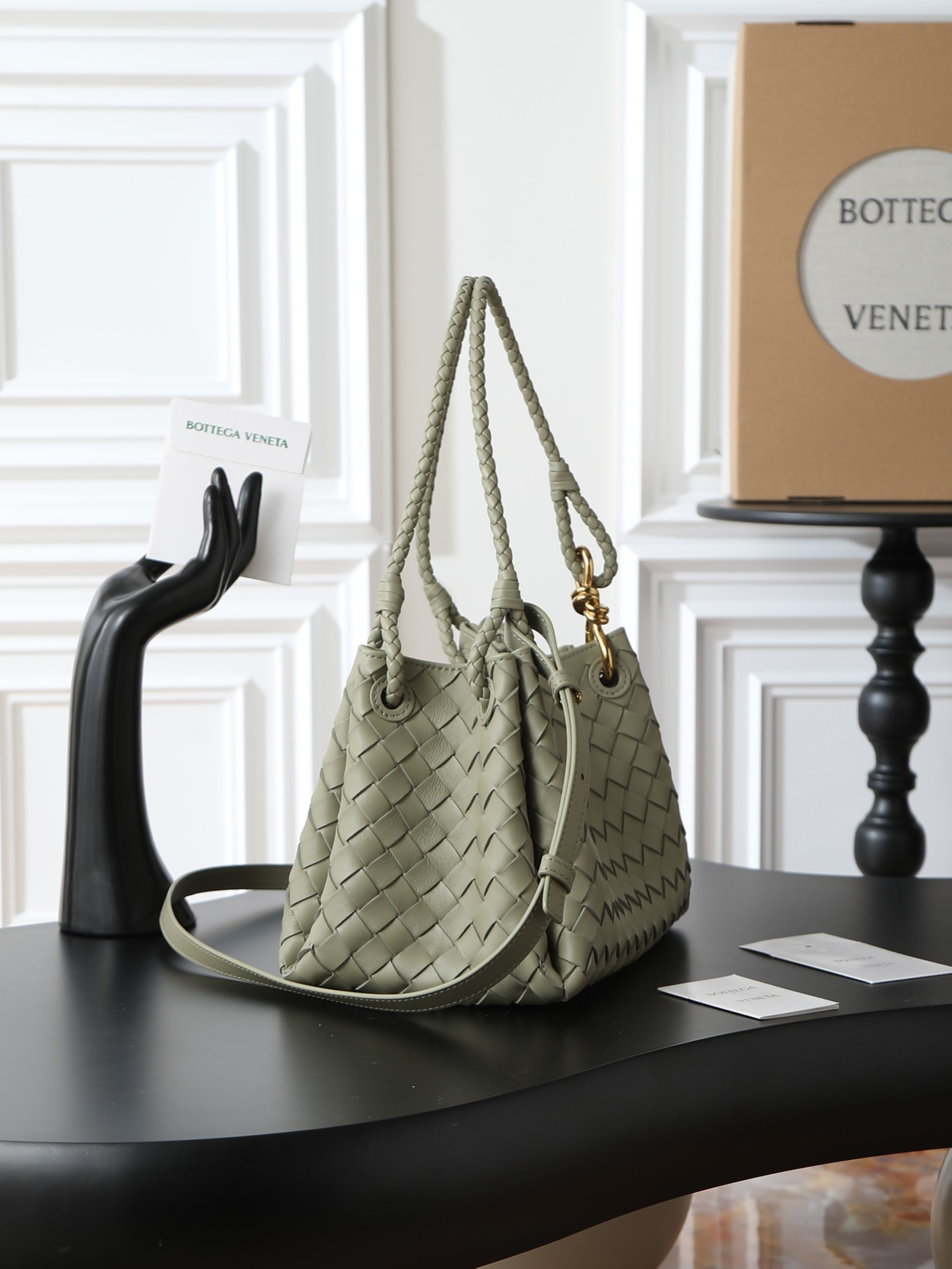 Made of soft and supple Nappa lambskin, featuring the classic Intrecciato weave and Knot details for a sophisticated vintage look.