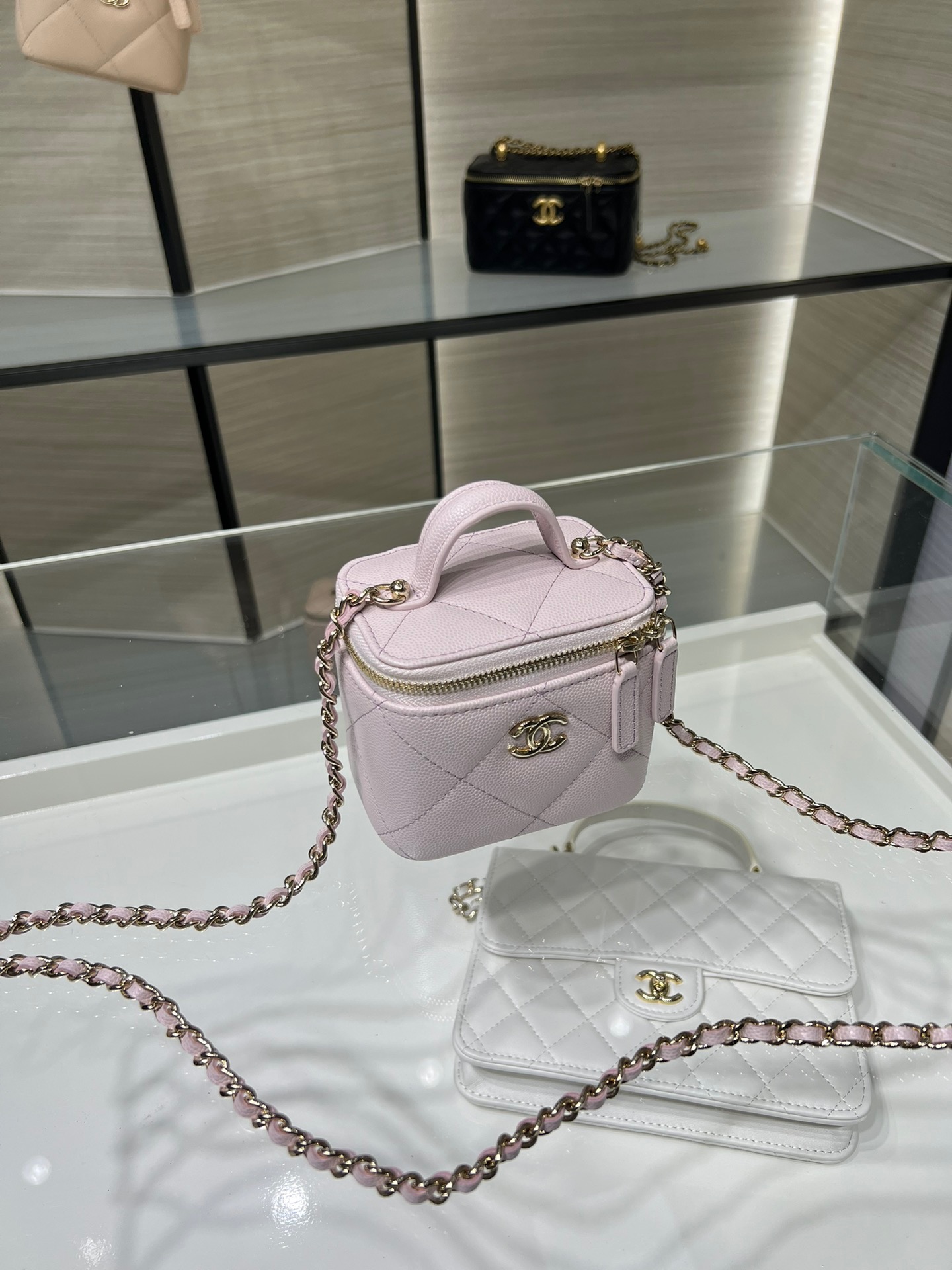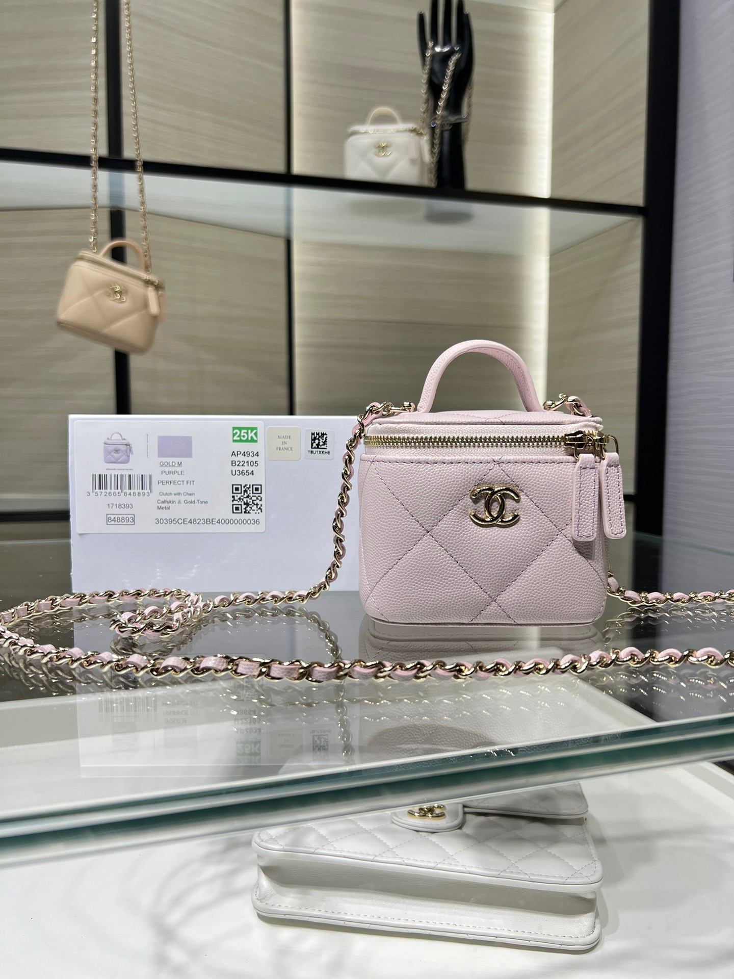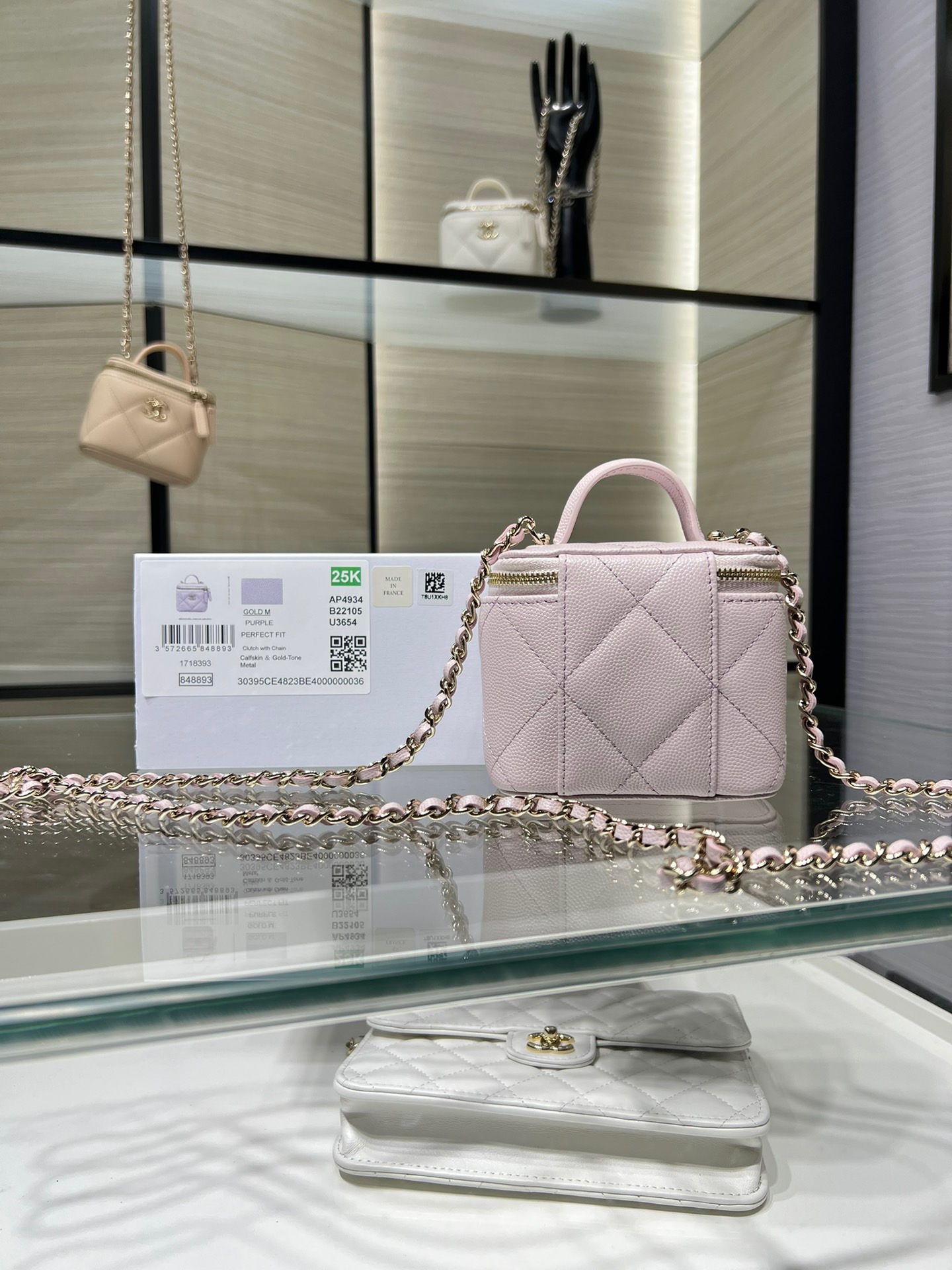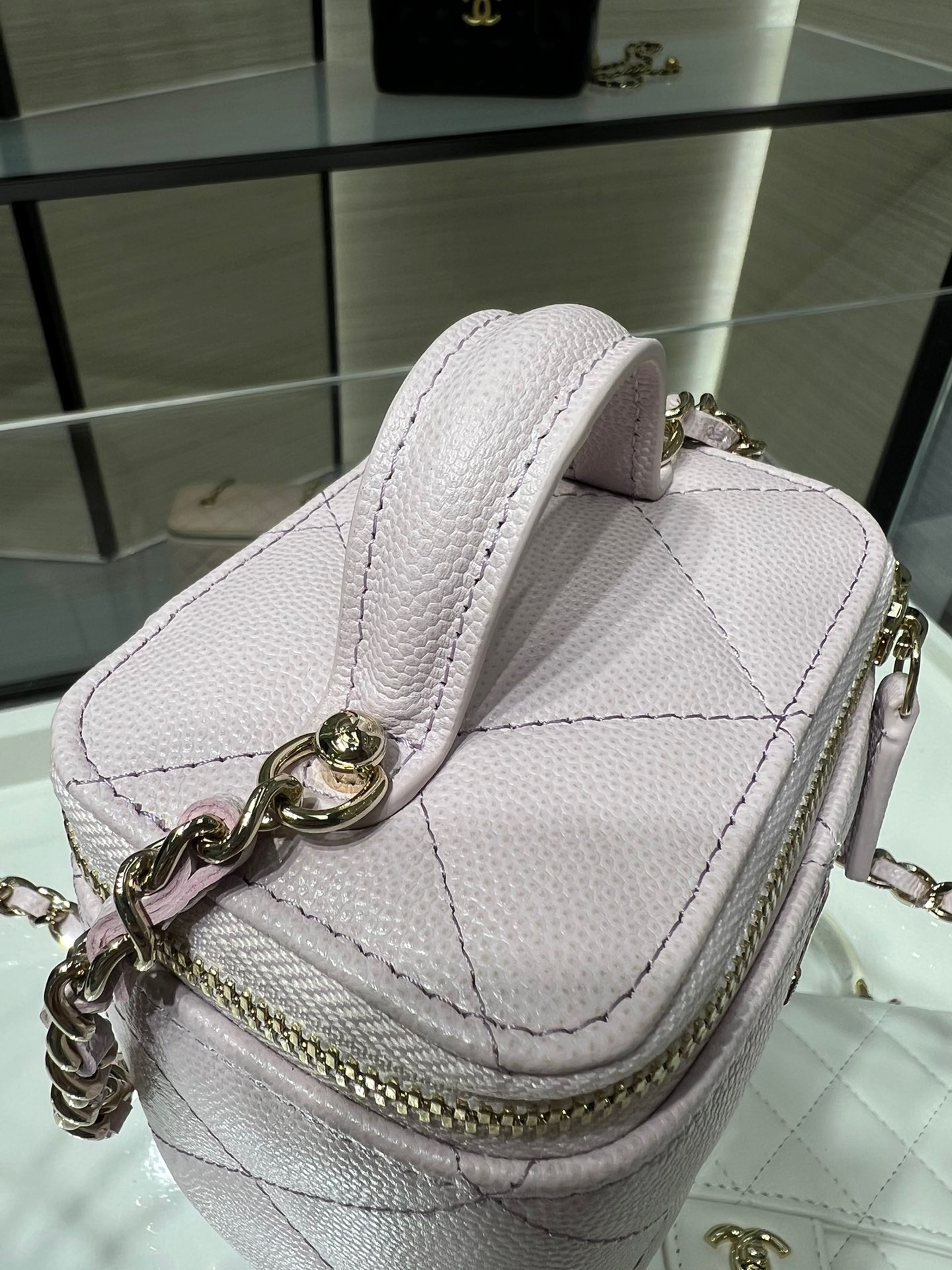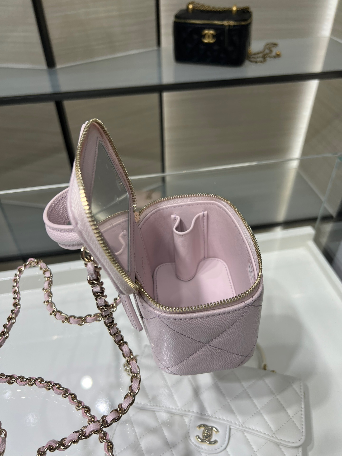 Large diamond pattern, small mirror inside, portable makeup box, mini storage box, original leather.