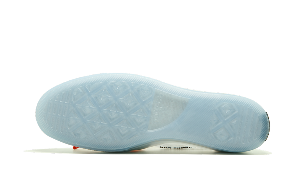 It received less attention than the other Nike and Air Jordan models in the OFF-WHITE x Nike “The Ten” collection, but the Converse Chuck Taylor All Star by Virgil Abloh is no less important. Released in early 2018—much later than the rest of the pack—the Chuck Taylor is the final installment in one of the most storied sneaker collaborations. The Chuck Taylor is inspired by the idea of “Ghosting” and features a translucent upper with clear outsoles. The word “Vulcanized” is boldly printed on each heel.