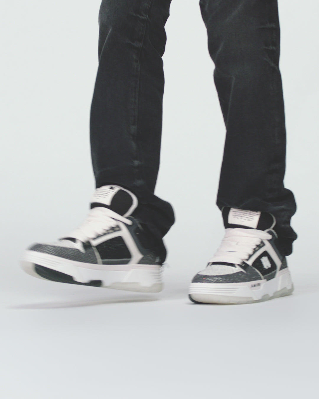 The MA-1, an ode to the bold, amplified sneaker silhouettes of ’90s West Coast skate renegades, appears in seasonal fabrications for Pre-Fall 2024. The Crystal MA-1 is crafted on an exaggerated rubber outsole with a crystal-embellished leather upper and features house logos on the side and back with double lace fastening.