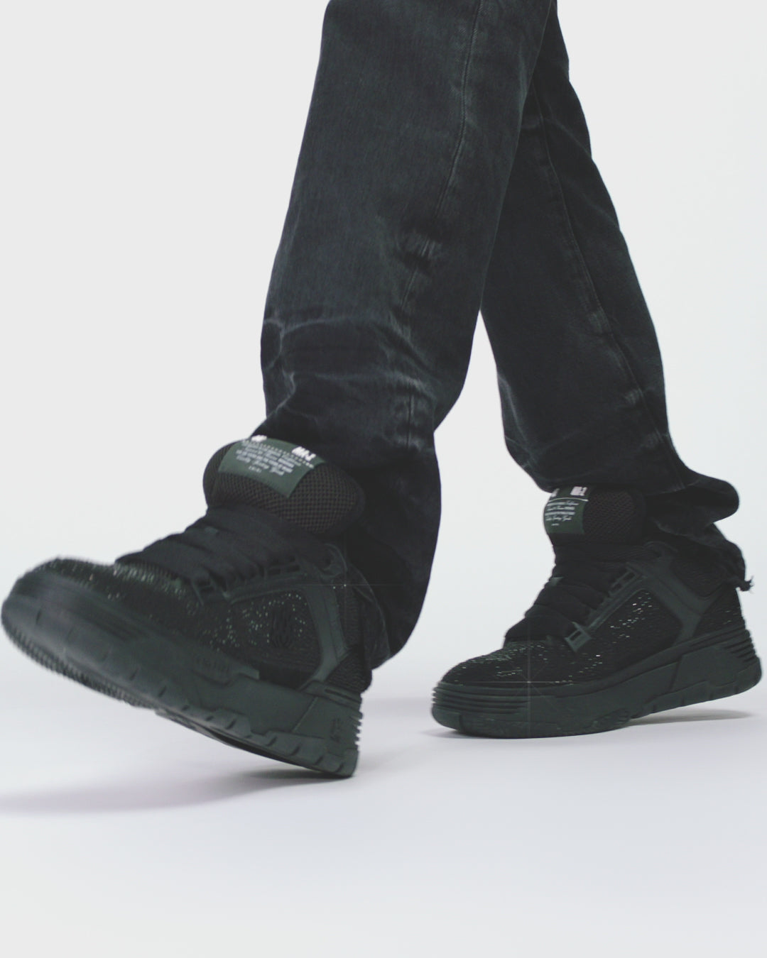 The MA-1, an ode to the bold, amplified sneaker silhouettes of ’90s West Coast skate renegades, is enriched with light-catching crystals for Pre-Fall 2025. The Crystal MA-1 is crafted on an exaggerated rubber outsole with a crystal-embellished upper, double lace fastening, MA icon hardware, and logo at back.