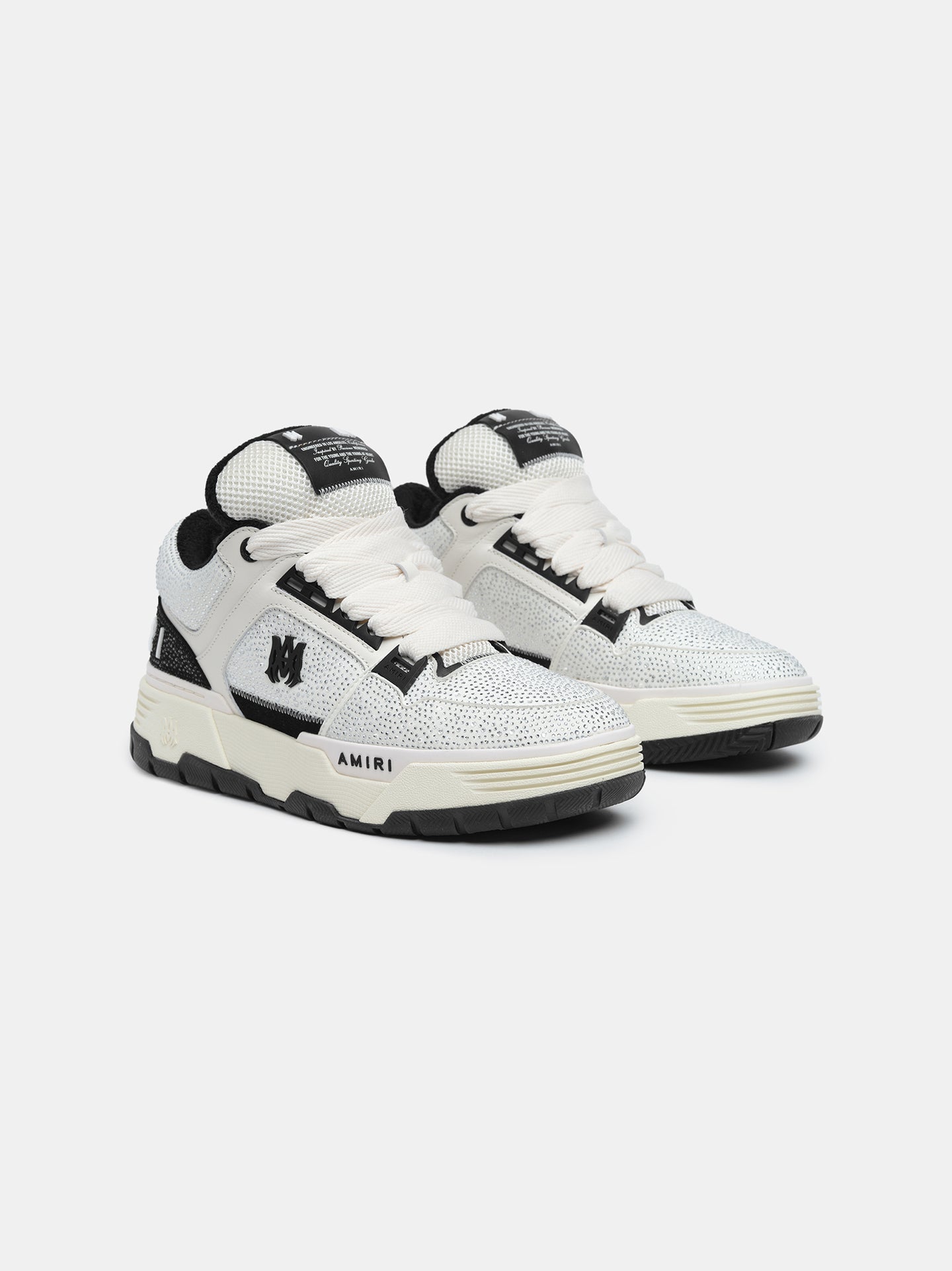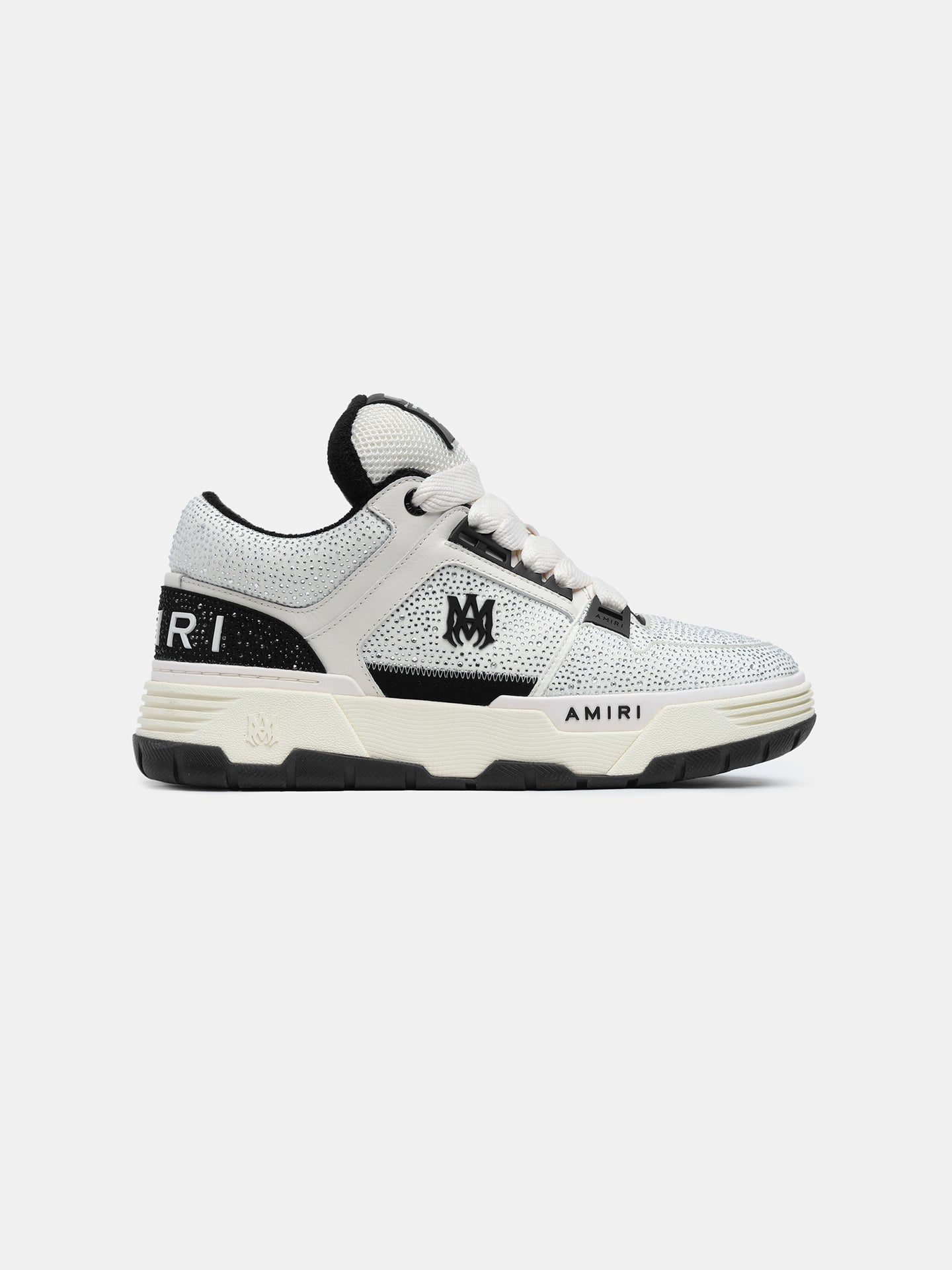 The MA-1, an ode to the bold, amplified sneaker silhouettes of ’90s West Coast skate renegades, appears in new seasonal fabrications for Pre-Spring 2025. The Crystal MA-1 is crafted on an exaggerated rubber outsole with a crystal-embellished upper, double lace fastening, MA icon hardware, and logo at back.