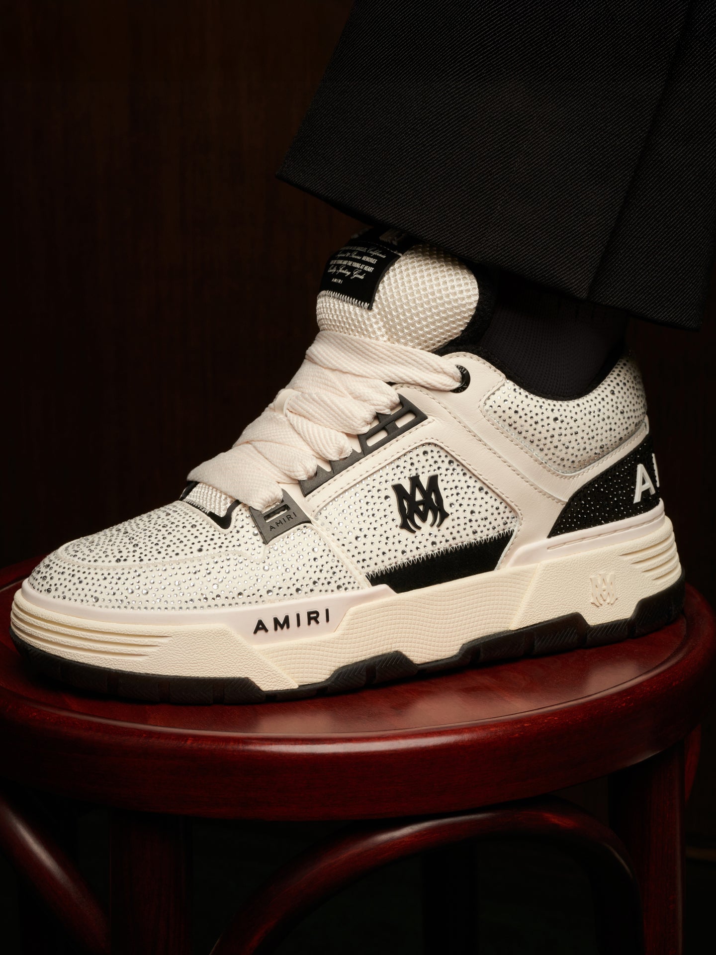 MA-1 SNEAKER WITH CRYSTAL DETAILING, MA ICON HARDWARE AND LOGO AT BACK.