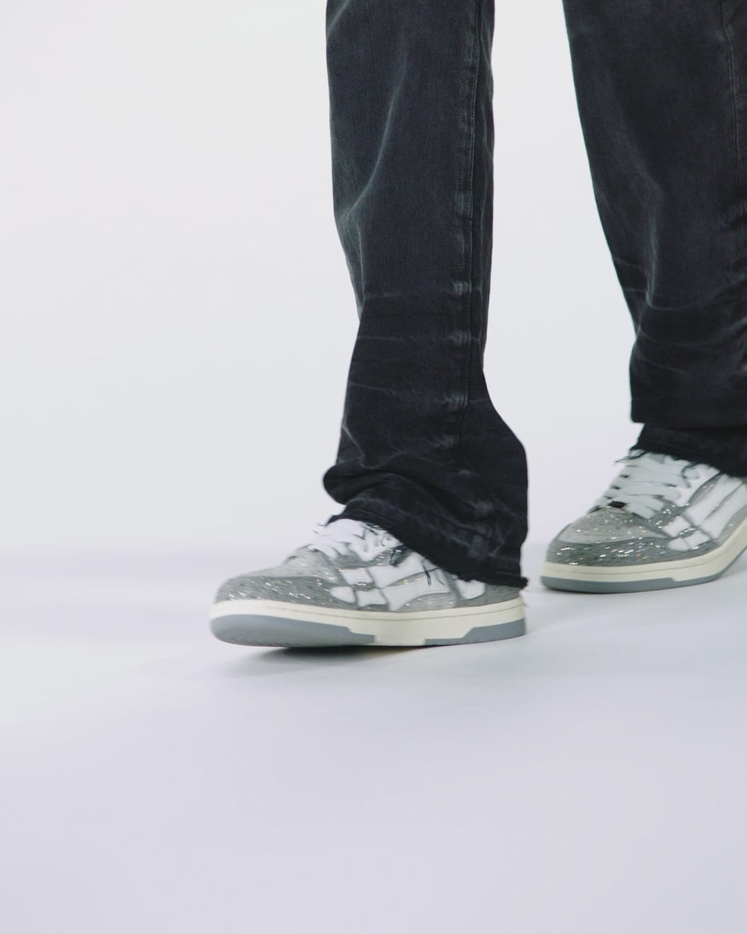 Autumn-Winter 2024 explores crystal embellishment as a means to illuminate familiar house icons. The Crystal Skel Top Low is crafted on a two-tone rubber sole with a crystal-embellished upper, leather bone appliqués, and signature graphics.