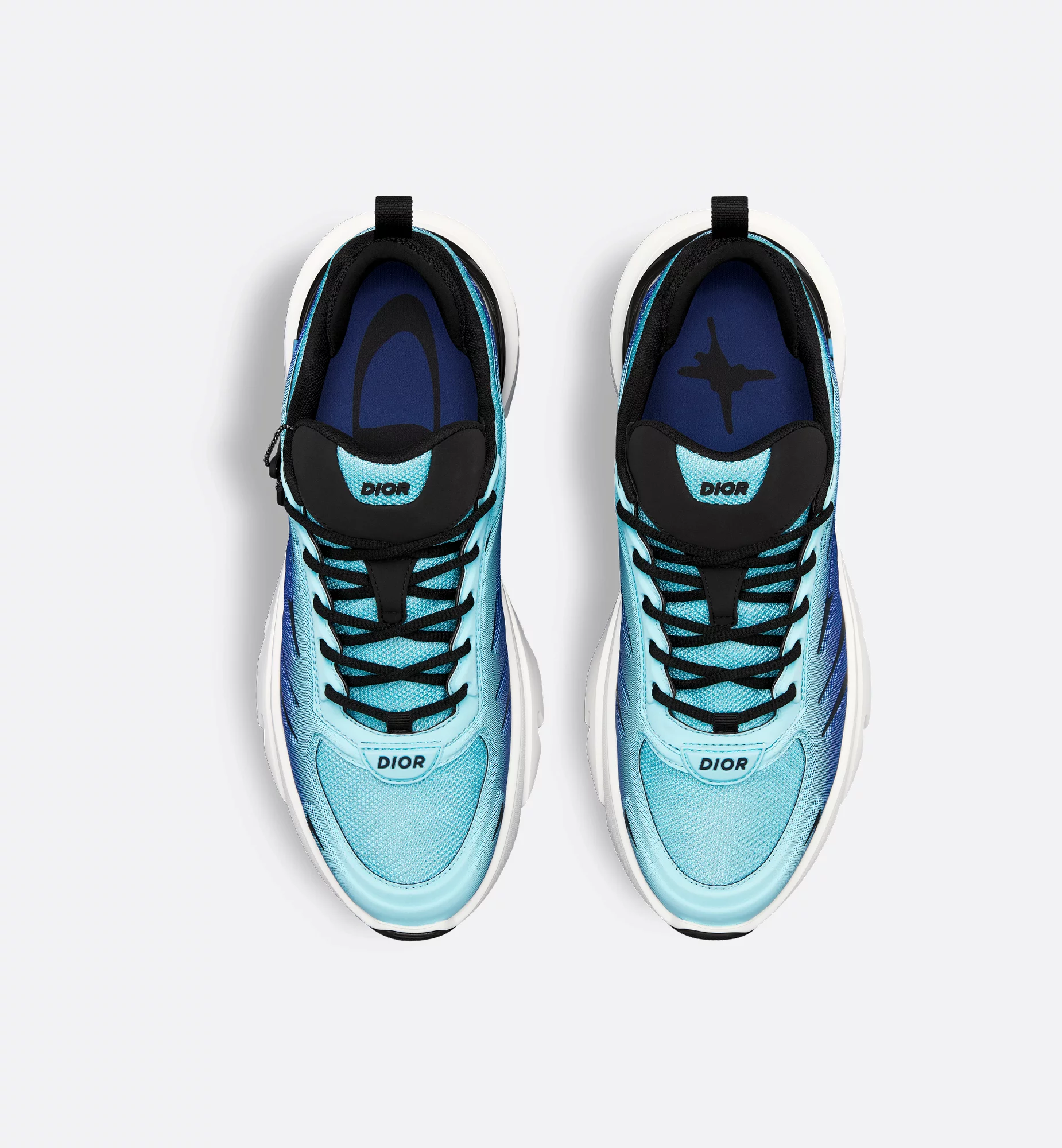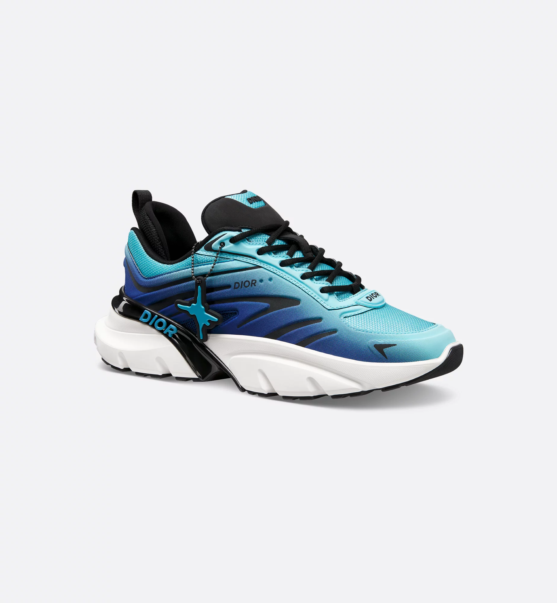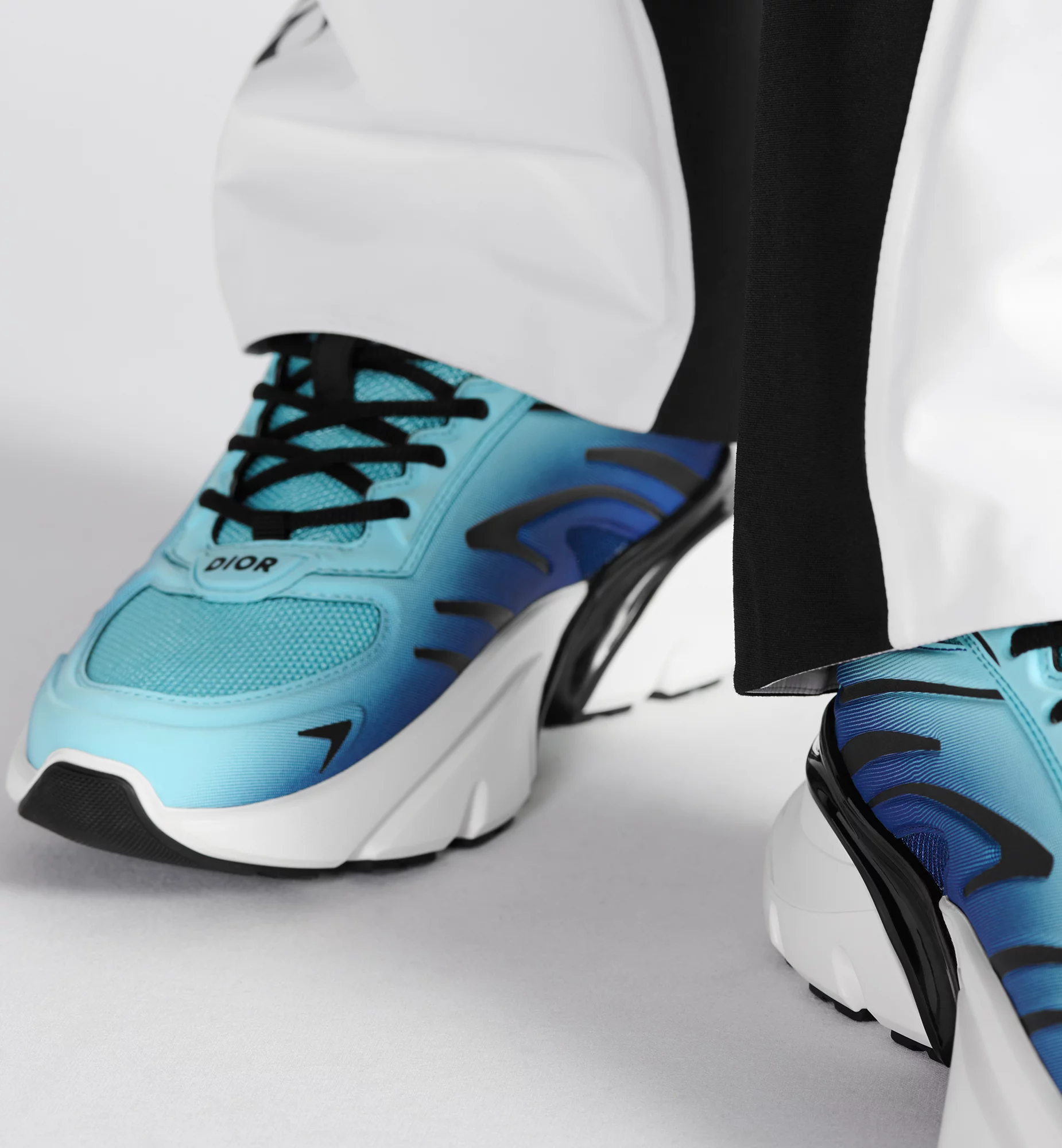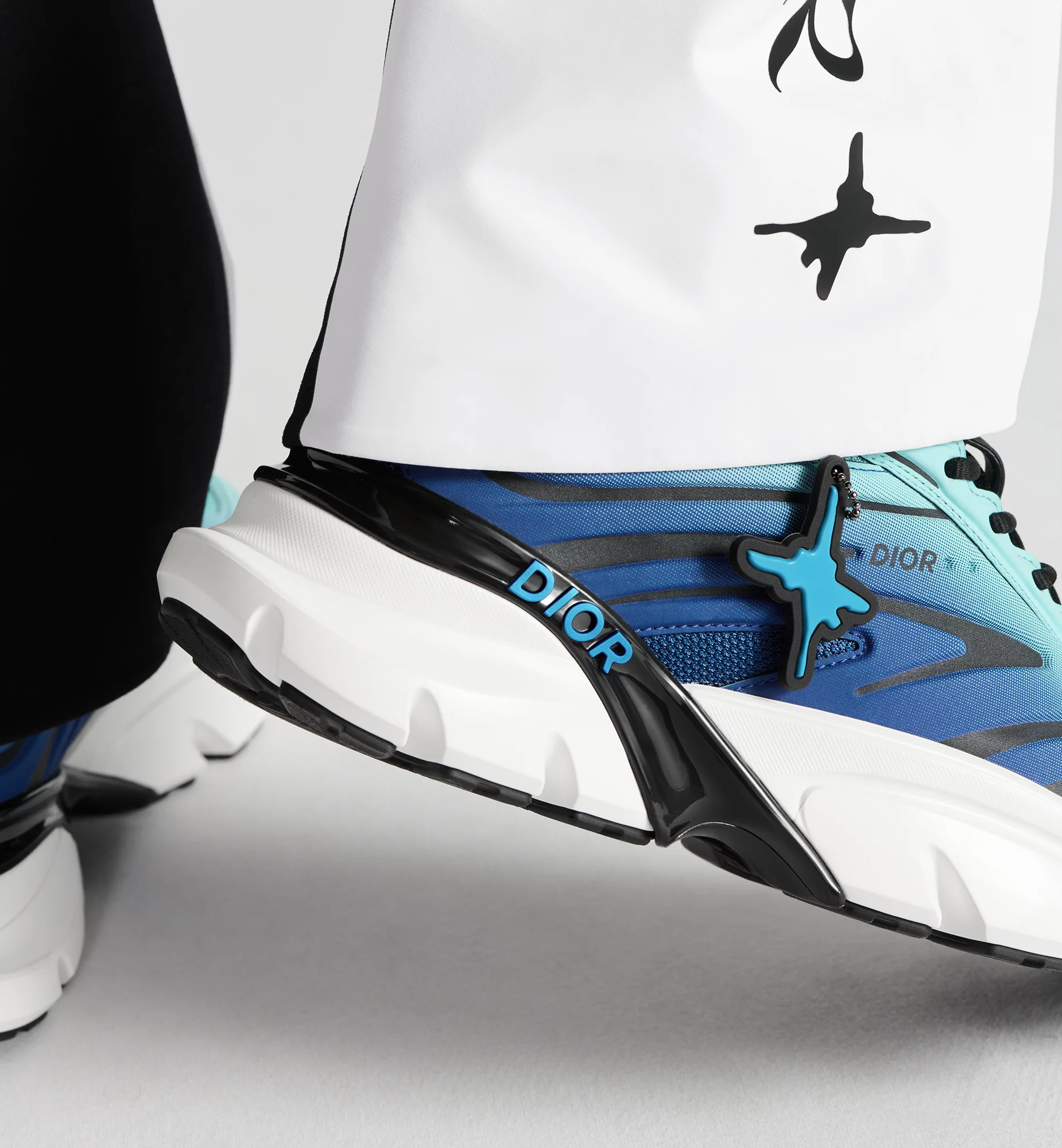 Part of the exclusive DIOR AND LEWIS HAMILTON capsule, the B44 Blade sneaker is characterized by a boldly voluminous silhouette inspired by the 2000s. Constructed in gradient blue technical mesh, it features tonal technical fabric panels and a contrasting Blade insert on the sole in reference to the running universe. It is adorned with a DIOR AND LEWIS HAMILTON signature charm hanging from an eyelet, while the top, heel and sides are accented by the Dior signature. Completed by black laces and a support sock that emphasizes its athletic aesthetic, the sneaker will elevate casual looks with an ultramodern touch.