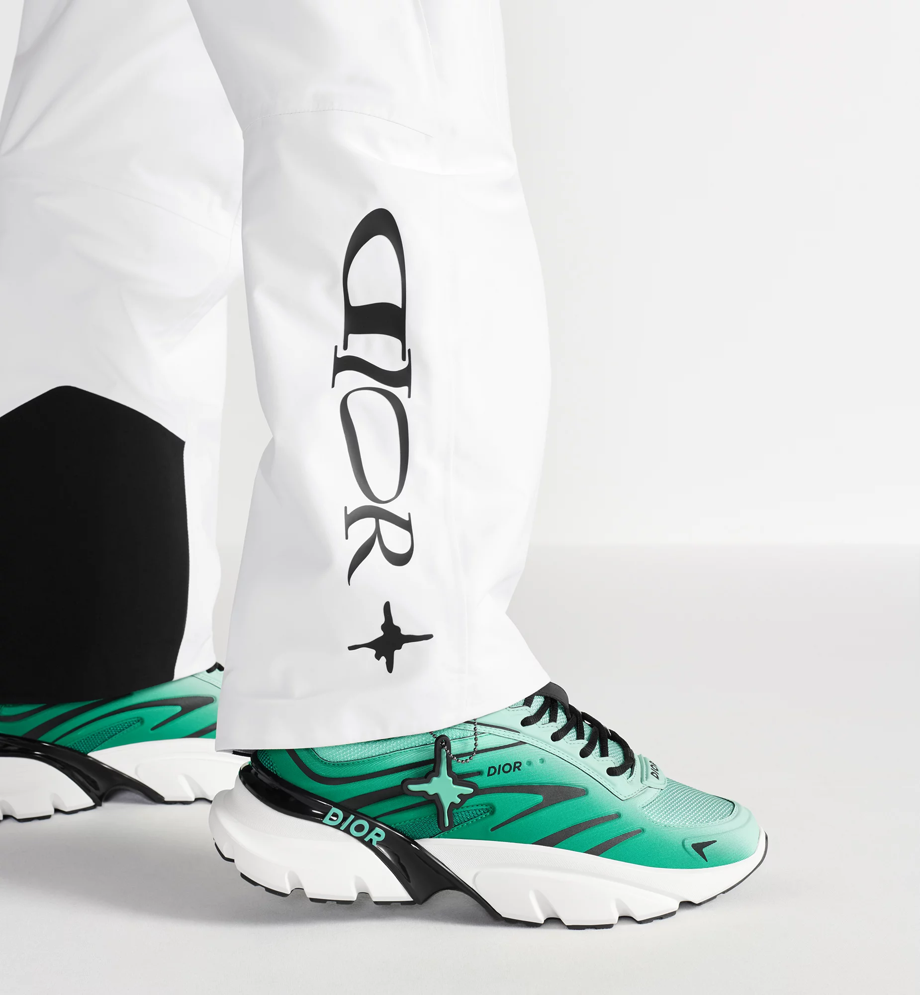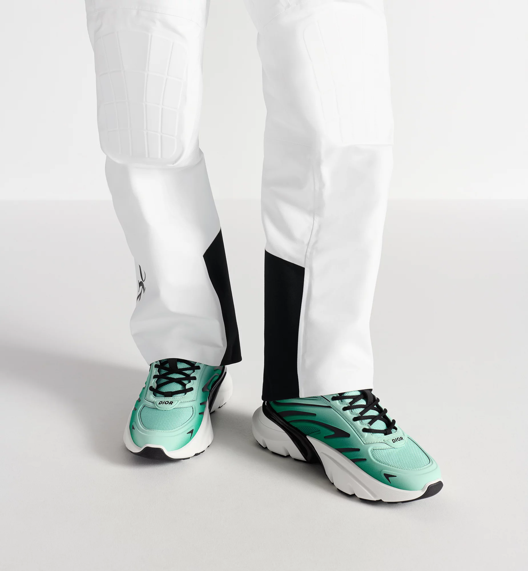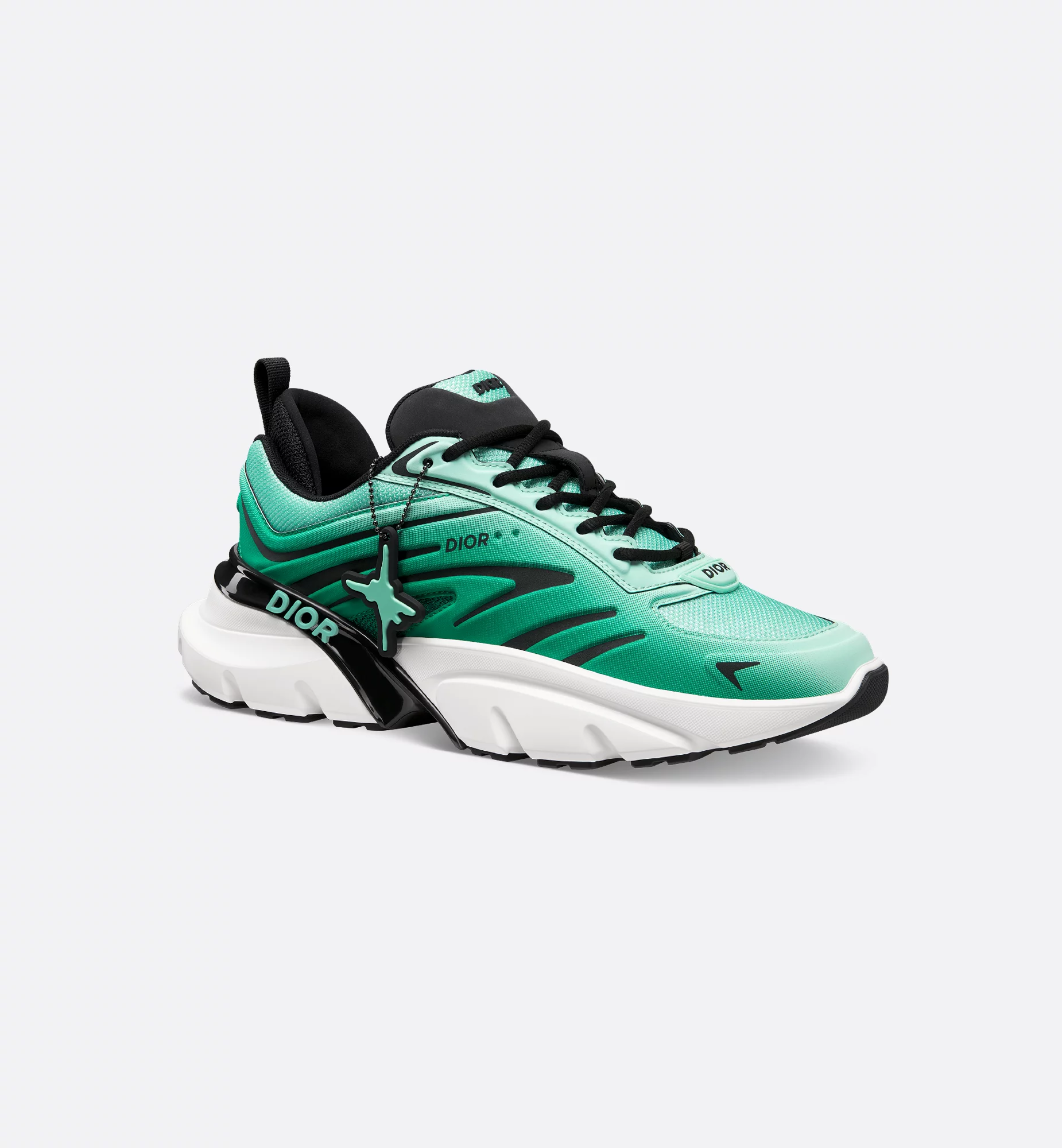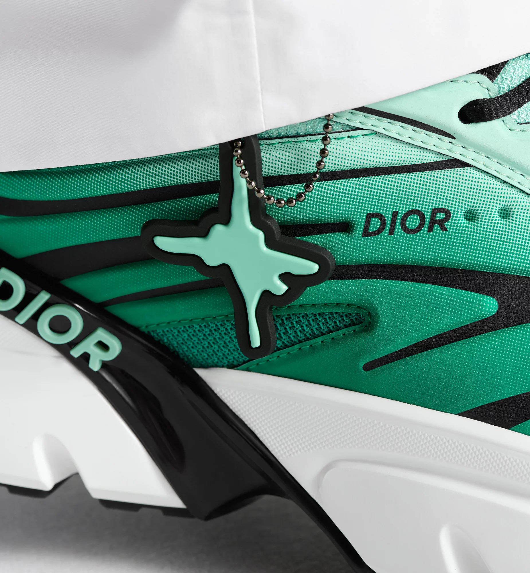 Part of the exclusive DIOR AND LEWIS HAMILTON capsule, the B44 Blade sneaker is characterized by a boldly voluminous silhouette inspired by the 2000s. Constructed in gradient green technical mesh, it features tonal technical fabric panels and a contrasting Blade insert on the sole in reference to the running universe. It is adorned with a DIOR AND LEWIS HAMILTON signature charm hanging from an eyelet, while the top, heel and sides are accented by the Dior signature. Completed by black laces and a support sock that emphasizes its athletic aesthetic, the sneaker will elevate casual looks with an ultramodern touch.
