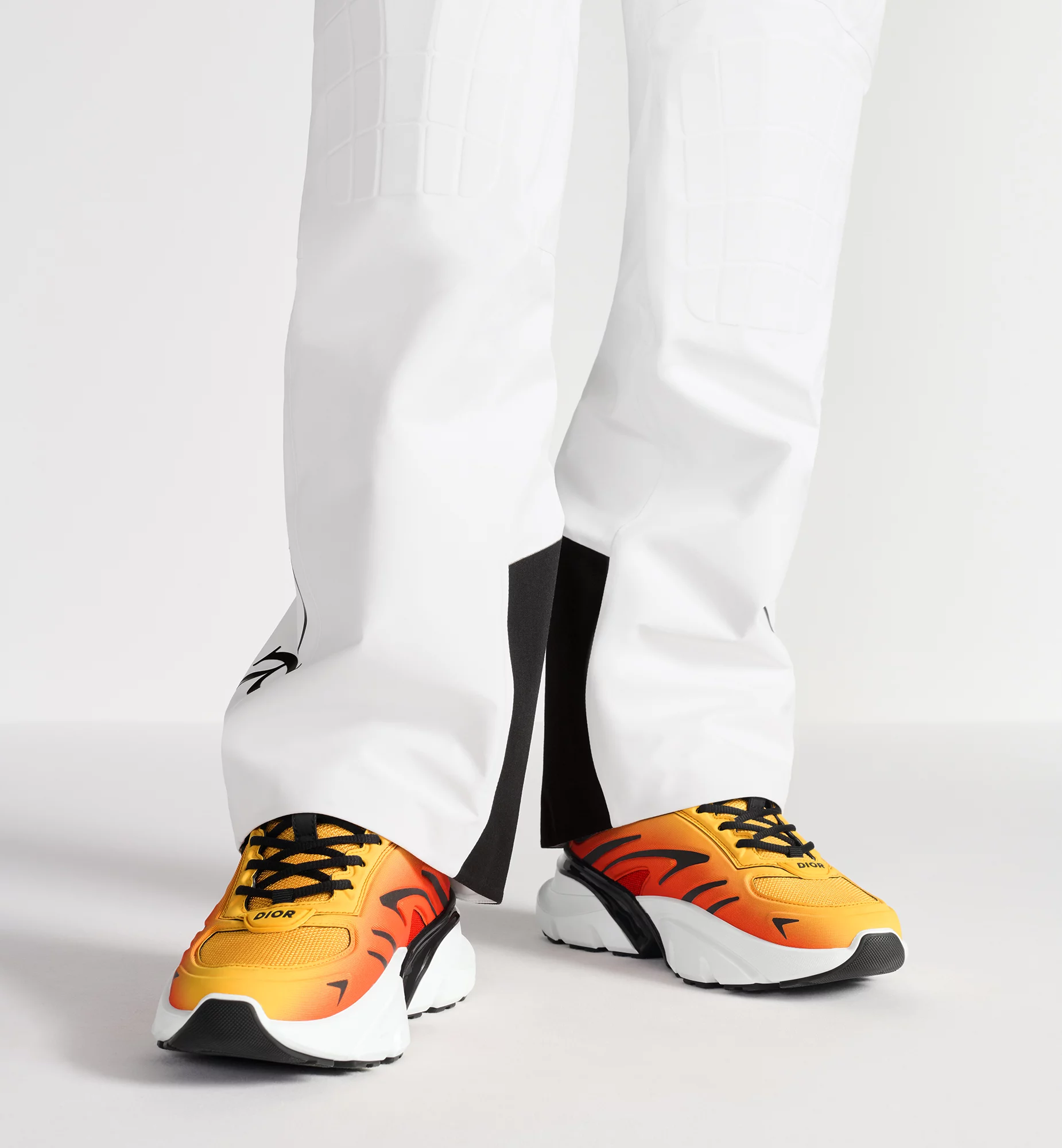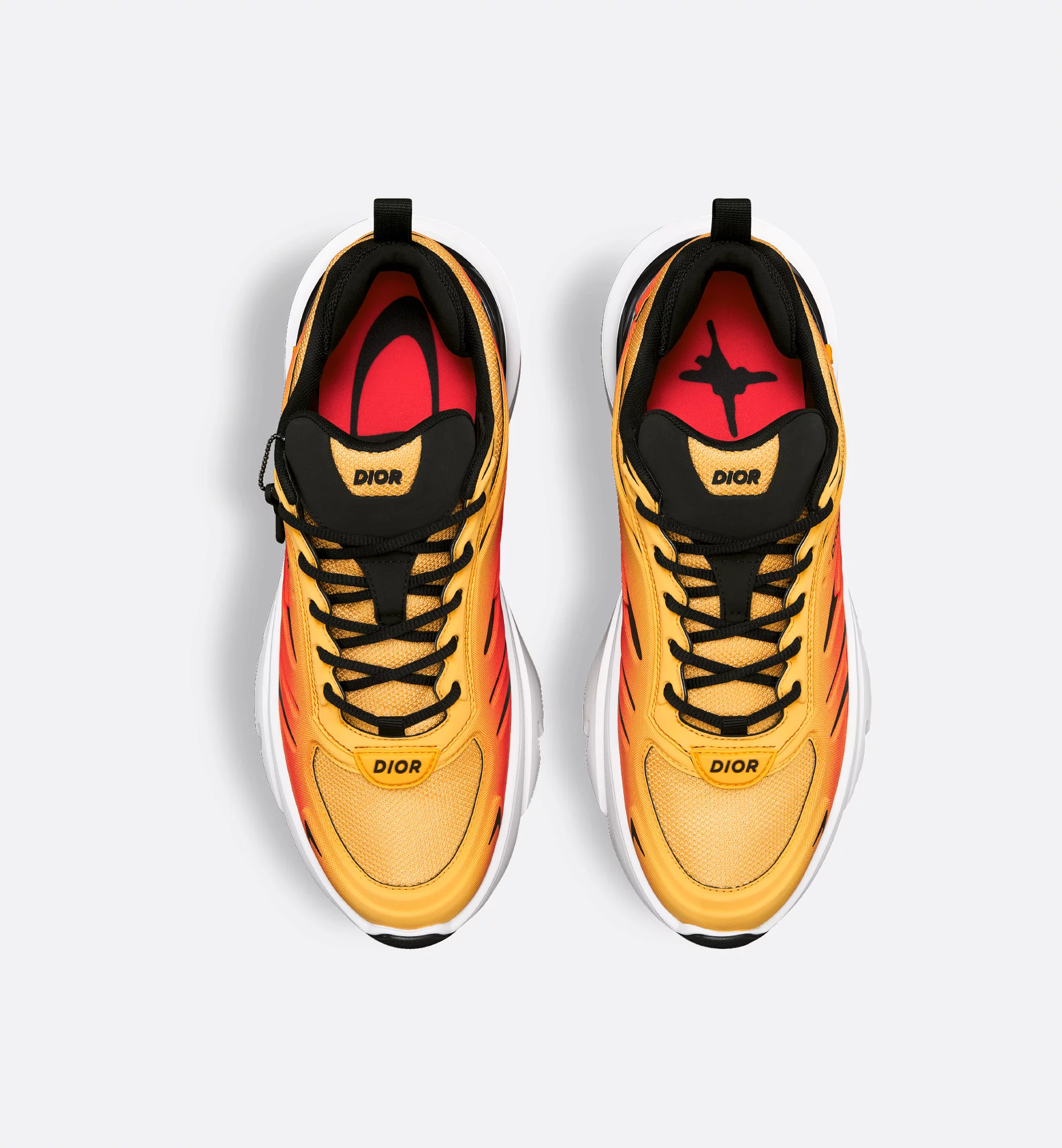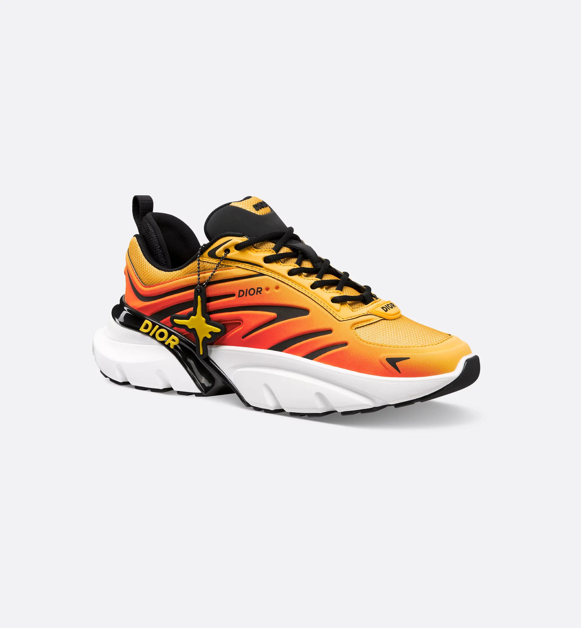 Part of the exclusive DIOR AND LEWIS HAMILTON capsule, the B44 Blade sneaker is characterized by a boldly voluminous silhouette inspired by the 2000s. Constructed in gradient orange technical mesh, it features tonal technical fabric panels and a contrasting Blade insert on the sole in reference to the running universe. It is adorned with a DIOR AND LEWIS HAMILTON signature charm hanging from an eyelet, while the top, heel and sides are accented by the Dior signature. Completed by black laces and a support sock that emphasizes its athletic aesthetic, the sneaker will elevate casual looks with an ultramodern touch.