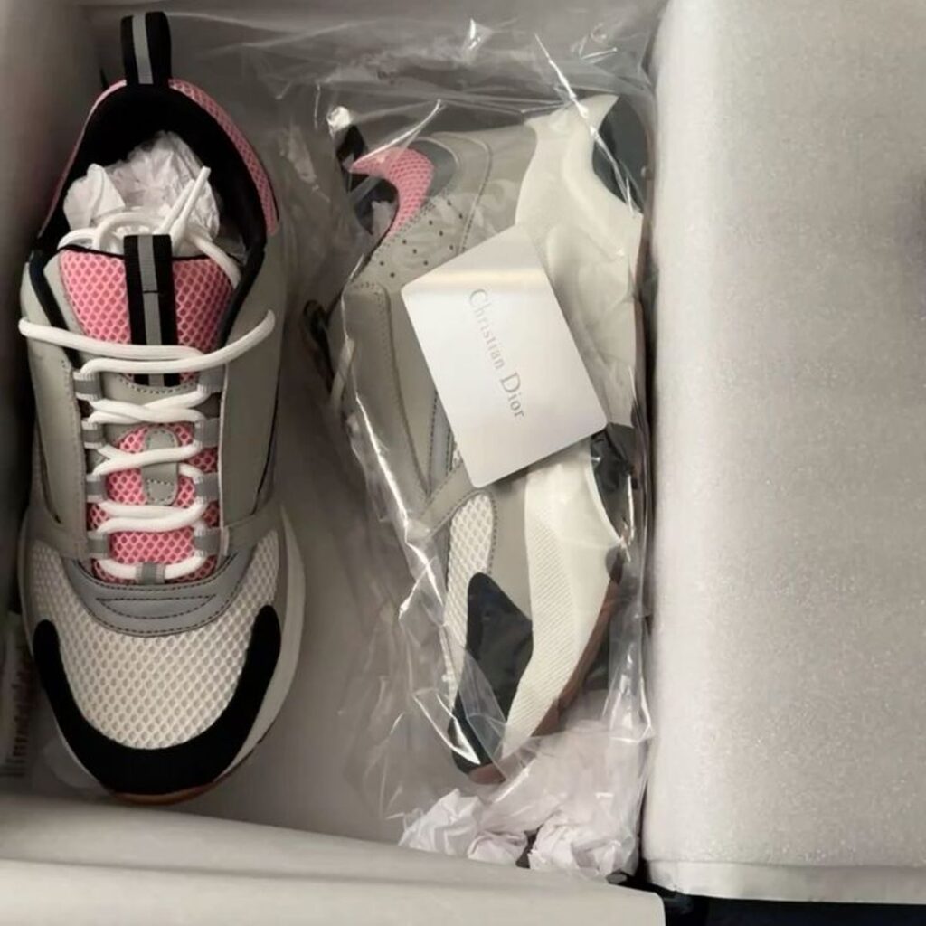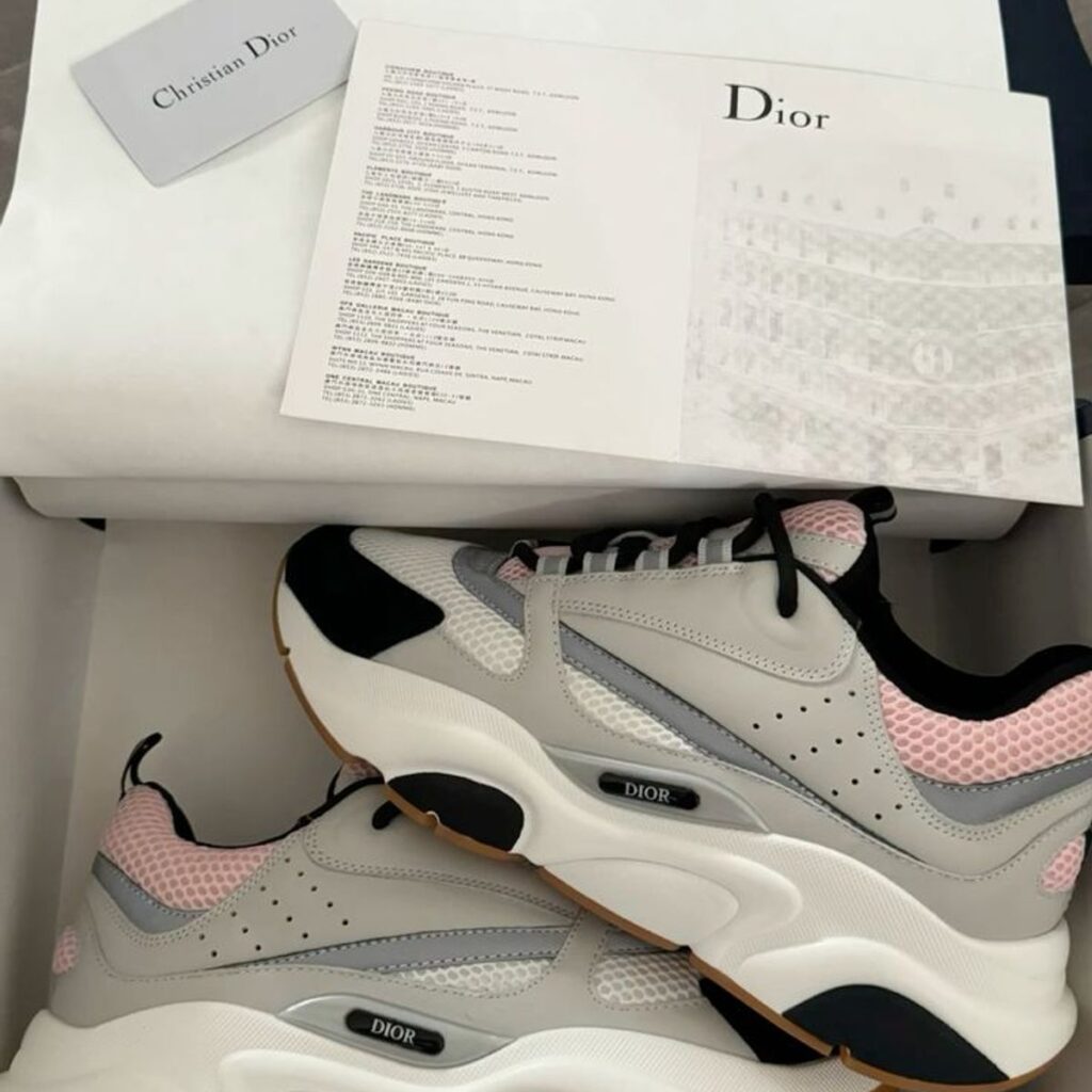 With a retail price of $1,100 and launched in April 2018, the Dior B22 Pale Pink Grey quickly became a coveted item for sneaker collectors and luxury fashion enthusiasts. Its release marked a significant moment in Dior’s foray into the sneaker world, showcasing the brand’s ability to blend contemporary design with timeless elegance. This sneaker is not just a piece of footwear; it’s a statement of sophistication and style.