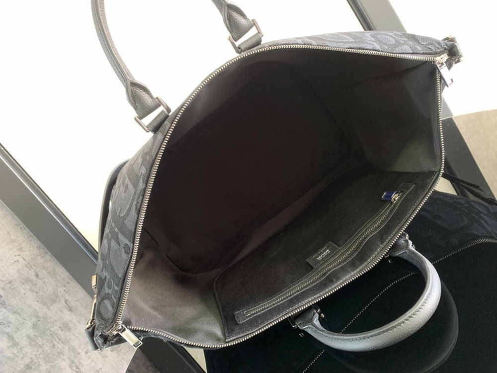 This Weekender 40 handbag boasts a classic and elegant design. The Dior Gravity print leather features an embossed pattern that exquisitely presents the classic Dior pattern on black calfskin, adorned with the Dior logo, showcasing the craftsmanship of the Dior ateliers. It includes a spacious zippered compartment for storing everyday essentials for short trips. With an adjustable, detachable shoulder strap and a top leather handle, it can be carried by hand or over the shoulder.