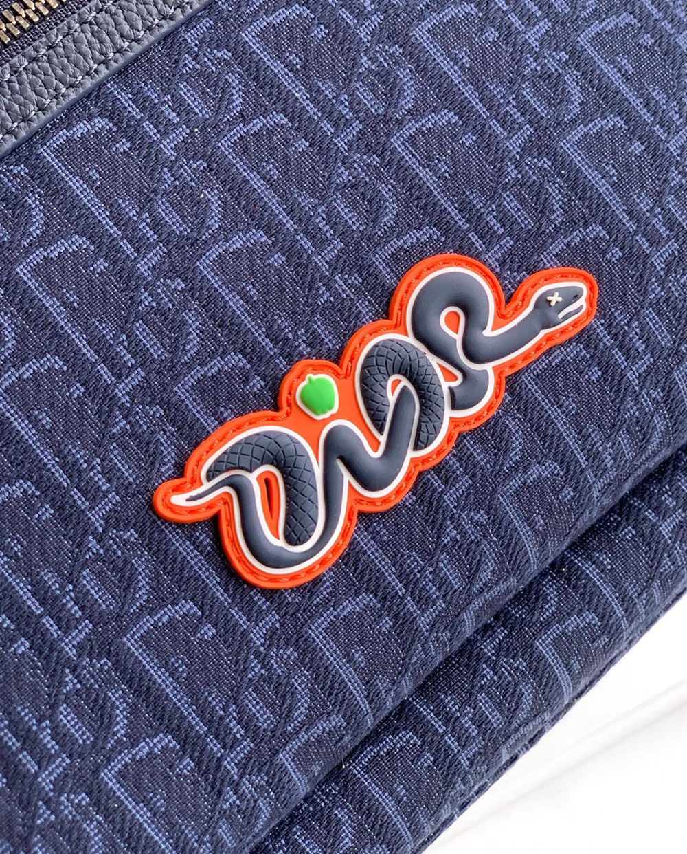 The Rider 2.0 Zip-Up Backpack (the highest quality version available) is from the DIOR AND KAWS limited edition collection. Crafted from black grained calfskin and other materials, it features a large front zip pocket adorned with a tonal Oblique print, complemented by pink and yellow DIOR AND KAWS rubber patches for added style, and a colorful snake motif that reinterprets the DIOR logo. With a two-way zip closure and adjustable padded shoulder straps, it’s the perfect everyday bag.
