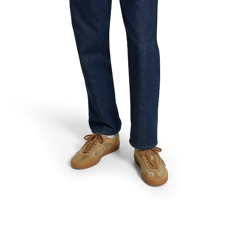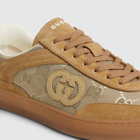 Inspired by retro basketball shoes from the ’70s, these sneakers are defined by the Interlocking G logo. Crafted from smooth suede, this design features a GG nylon insert detail.