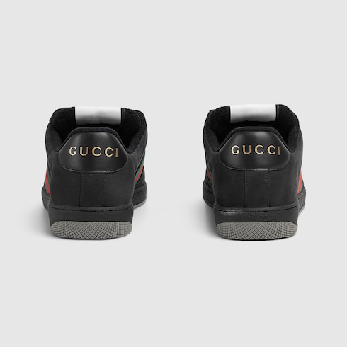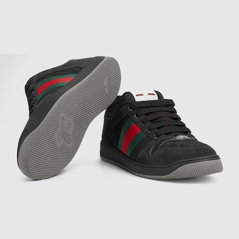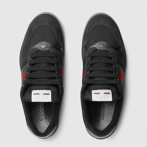 Influenced by classic sneakers from the ’70s, the Screener sneakers—named for the defensive sports move—feature the Web stripe on the side and the vintage Gucci logo. This design is crafted in the emblematic GG canvas, while the green and red Web completes the style.