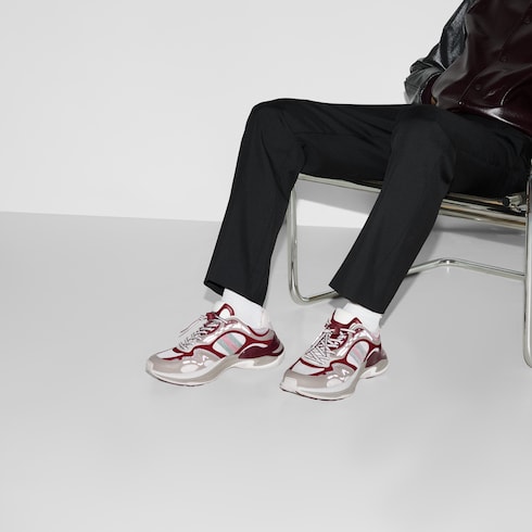 Grey and Gucci Rosso Ancora red mesh and leather