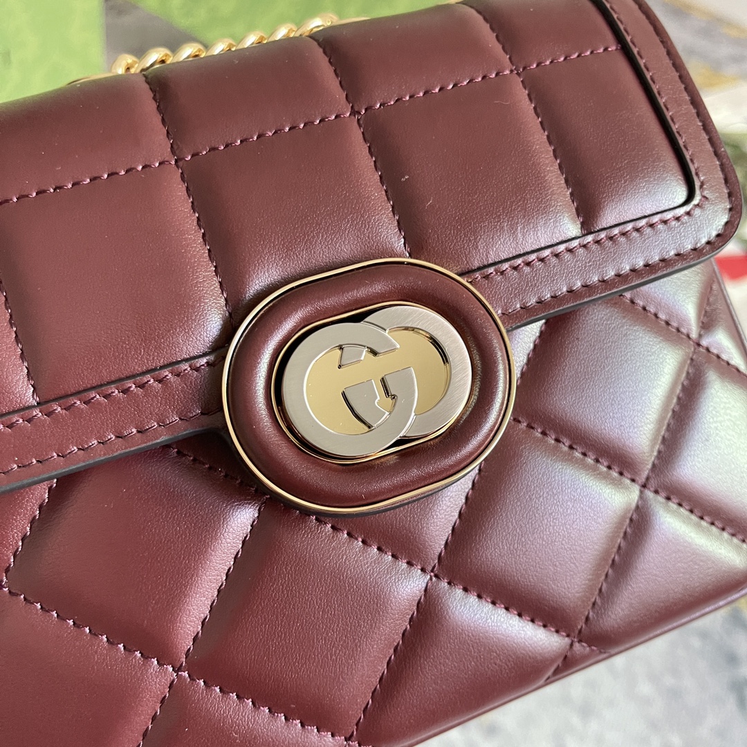 Gucci burgundy red Deco mini quilted leather shoulder bag