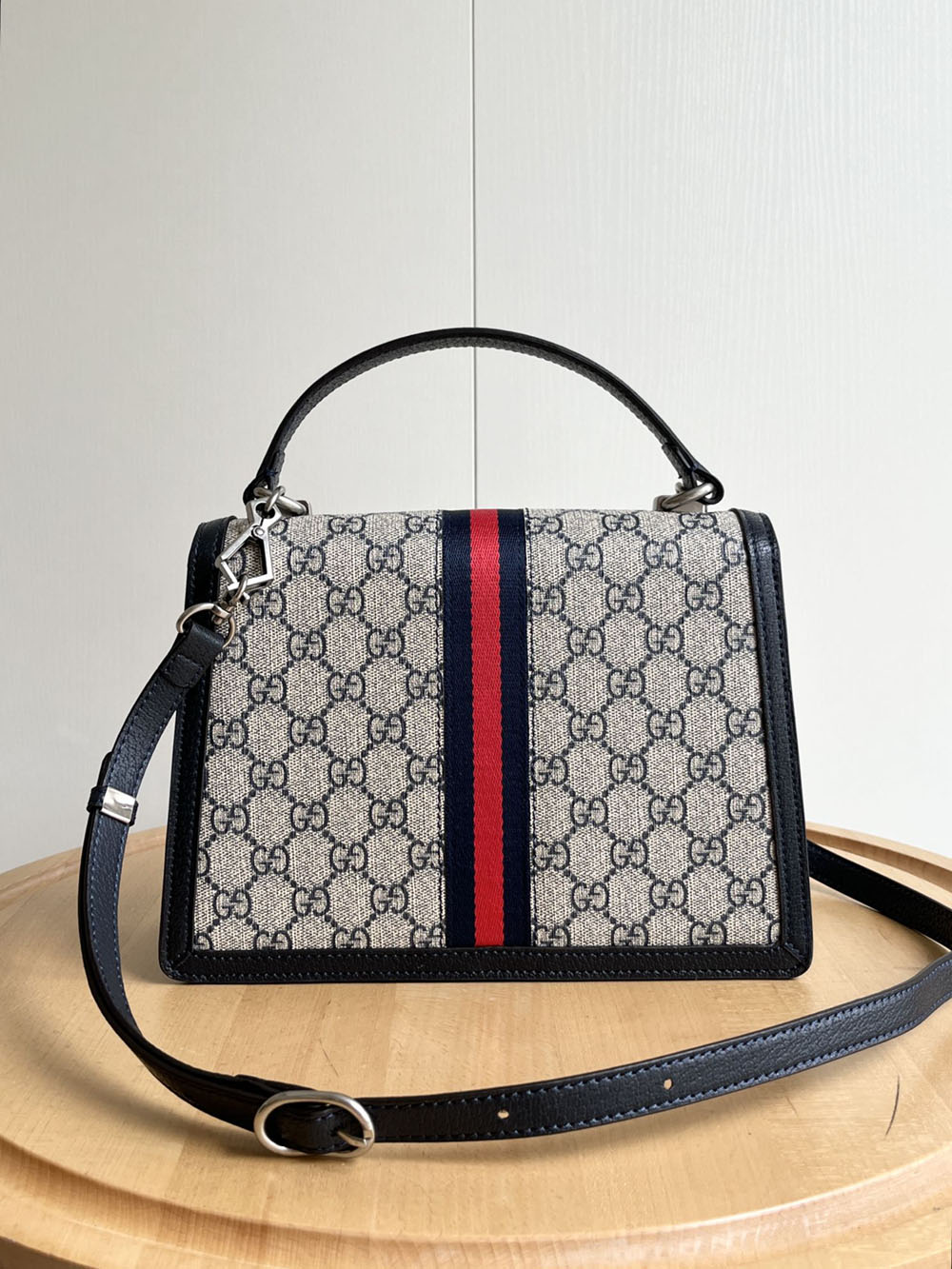 Dimensions: 25*17.5*7cm Gucci’s Ophidia collection delivers stunning new pieces every season, and this handbag, part of the Epilogue series, features a detachable shoulder strap. Its square, vintage shape is combined with the brand’s classic striped webbing and double-G hardware, inspired by the iconic 1970s Gucci belt buckle design and reinterpreted with modern aesthetics to become one of the brand’s symbols. The bag is crafted from the brand’s signature double-G patterned canvas.