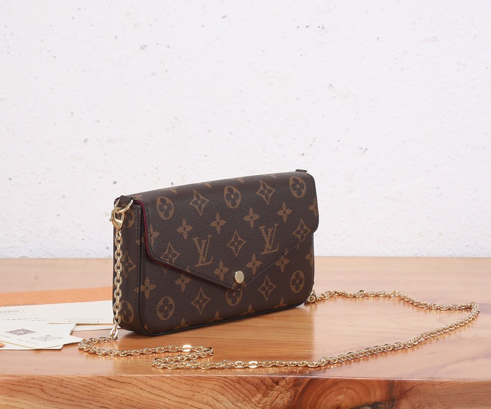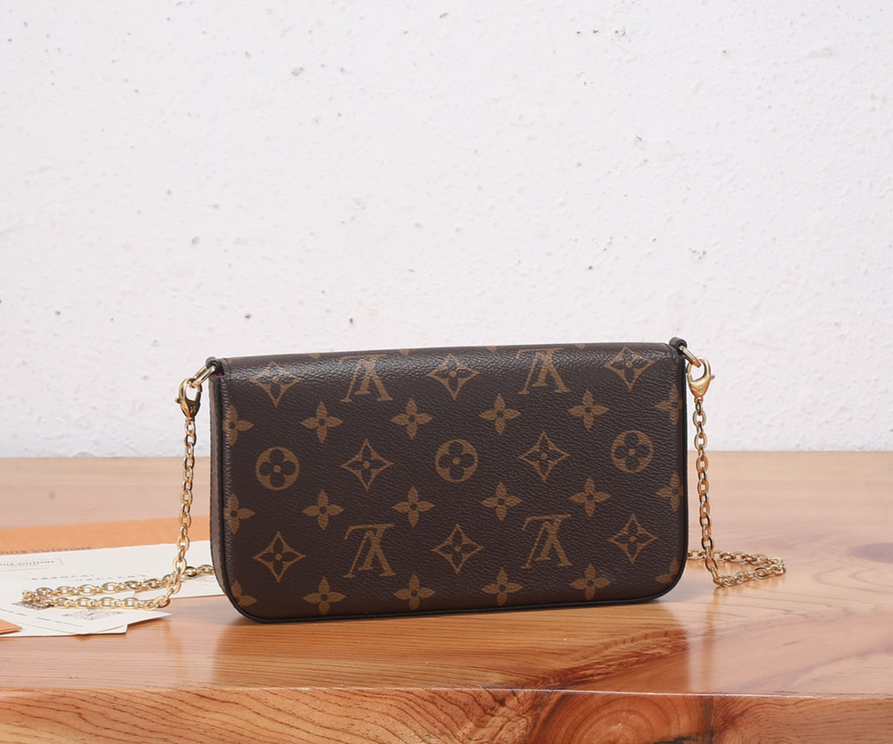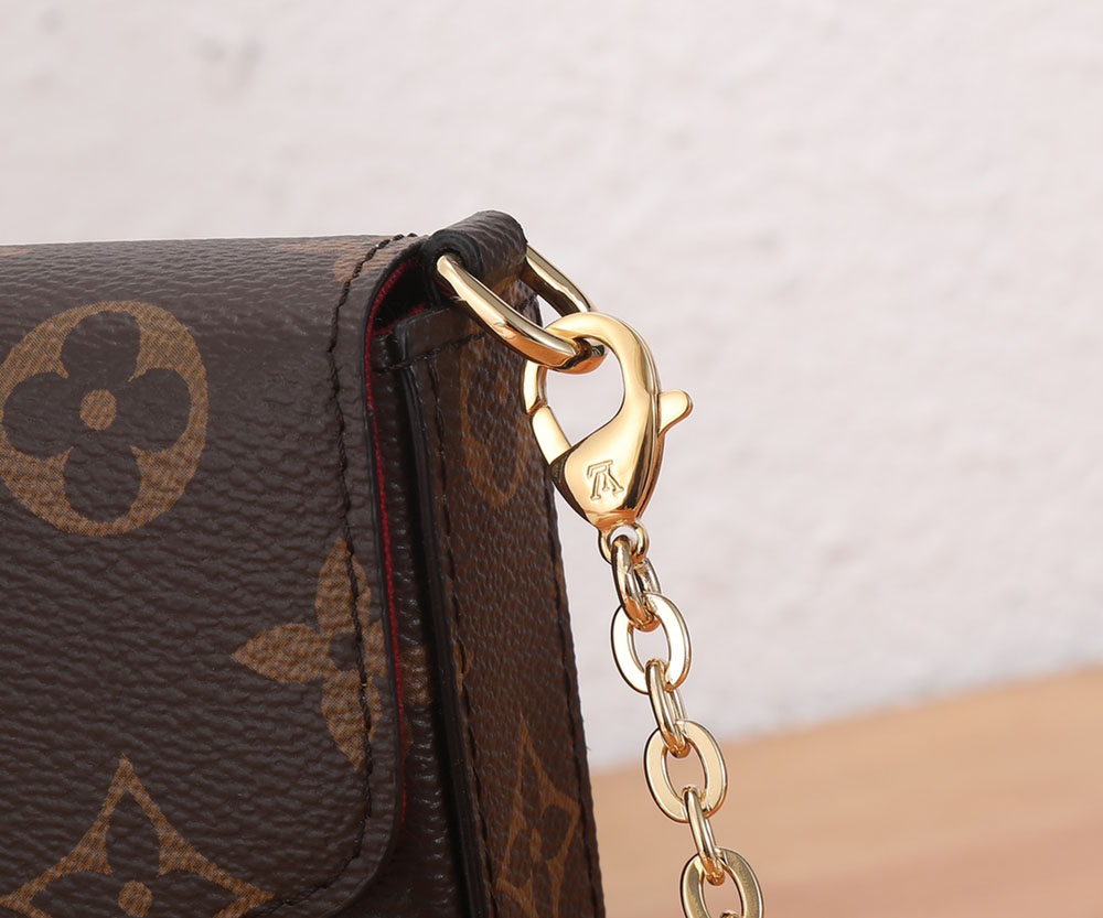 The Pochette Felicie handbag, crafted from Monogram canvas, is elegant and luxurious, featuring two detachable pockets, making it a stylish choice for carrying and organizing everyday essentials. It comes with a detachable chain strap, allowing it to be carried by hand or over the shoulder.