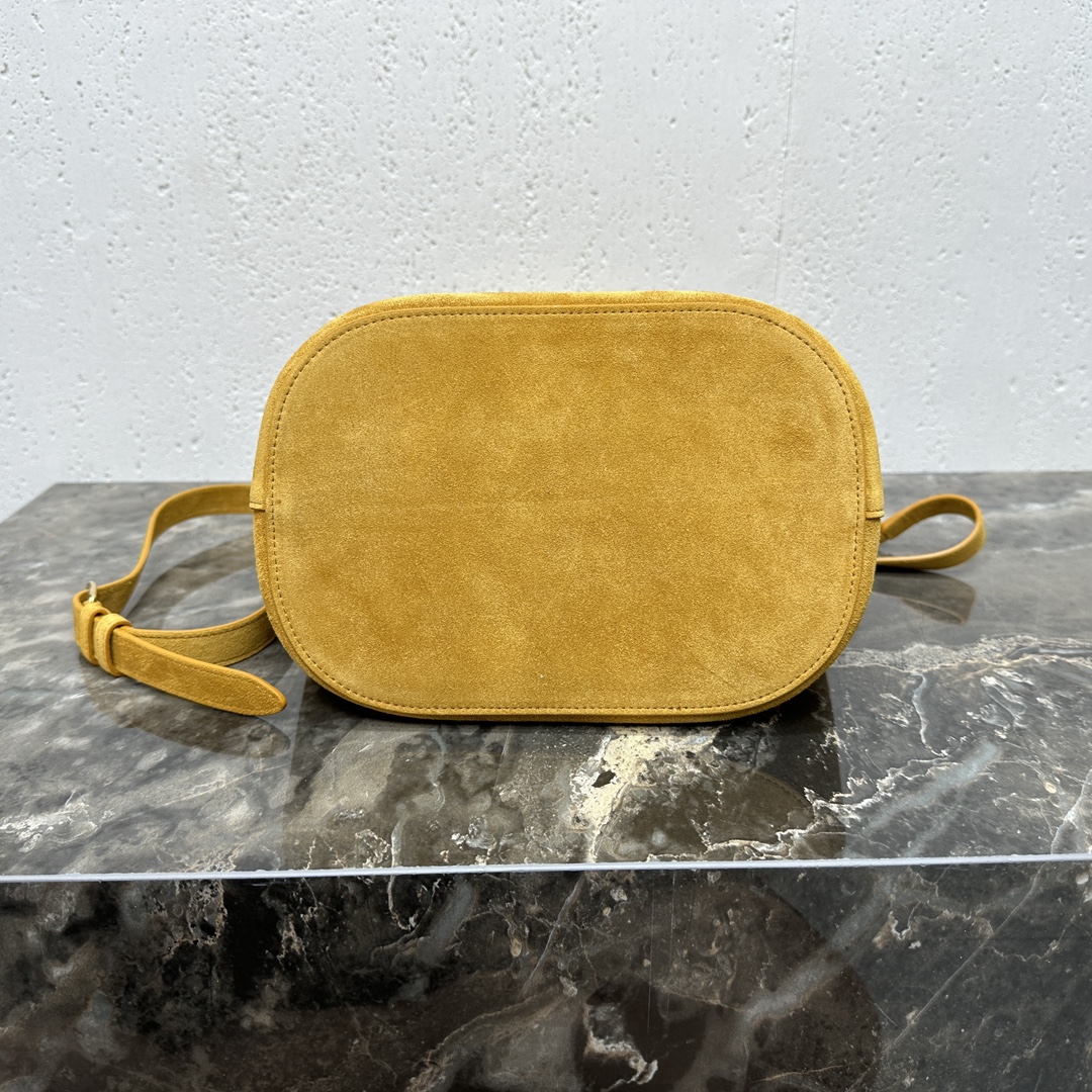 12 x 9 x 6 inches (30.5 x 24 x 16 cm) cowhide suede Lambskin leather lining Hand-carry, shoulder-carry, and crossbody Leather flip cover with TRIOMPHE magnetic closure One removable zippered pocket inside One leather handle is 4 inches (9 cm) long. Detachable and adjustable shoulder straps, minimum length 20 inches (50 cm), maximum length 23 inches (57 cm).