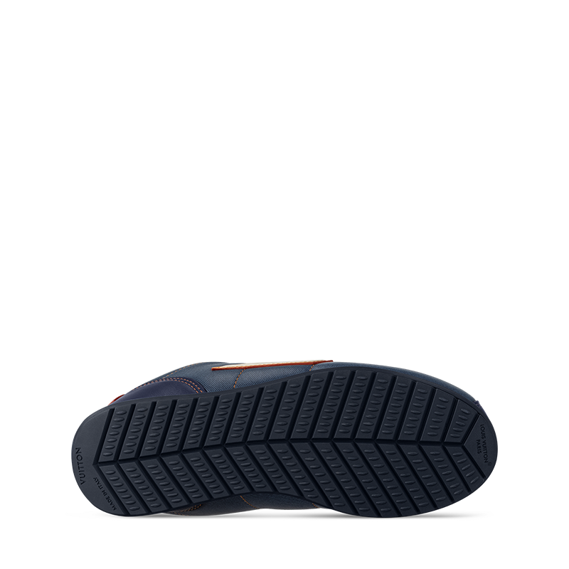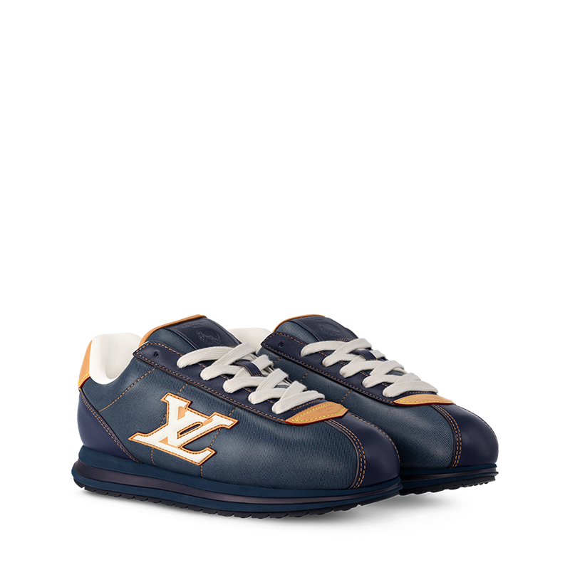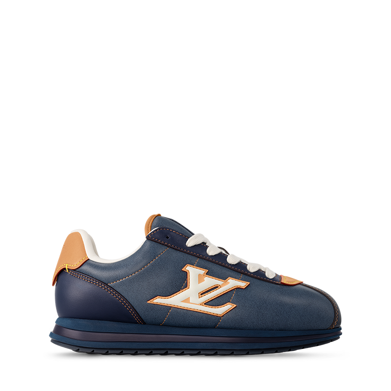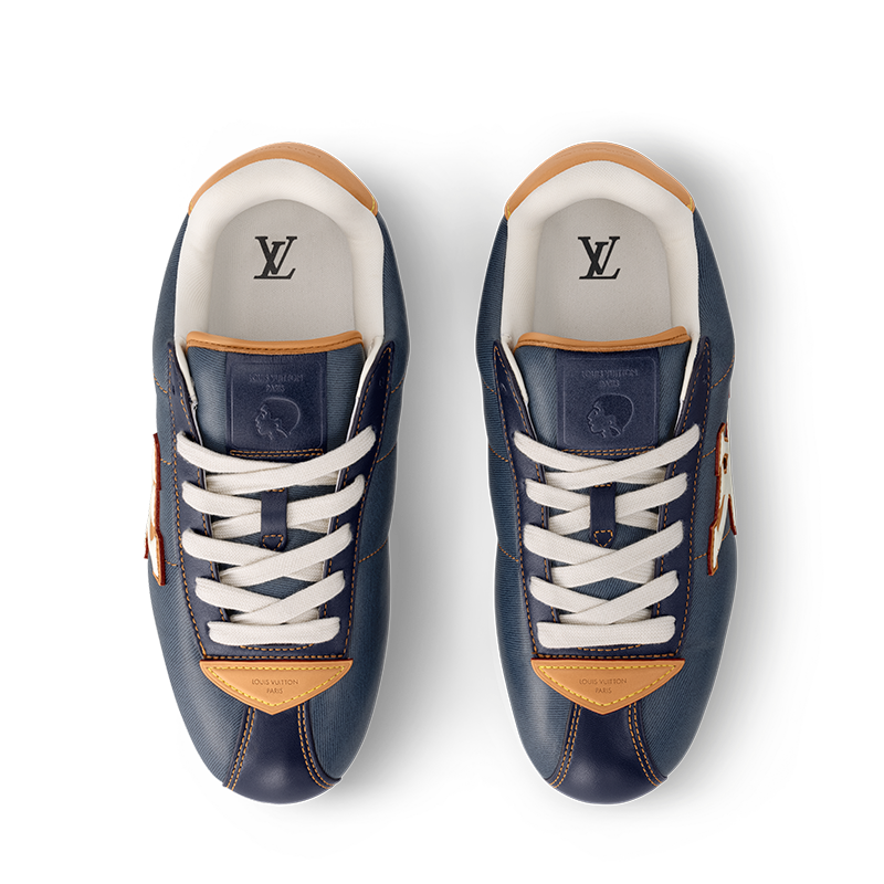 This edition of the LV BUTTERSOFT Sneaker comes in lambskin and calf leather with a denim effect. Designed by Men’s Creative Director Pharrell Williams, this model takes its name from the ultra-soft feel of the leather, which is enhanced by the padded upper, expertly stitched by Louis Vuitton artisans. The upper is complemented by natural leather trim, inspired by the leather goods, an LV Initials signature and embossed motifs of Pharrell Williams’ profile and a lobster, referencing the Fall-Winter 2025 men’s show.