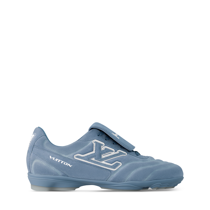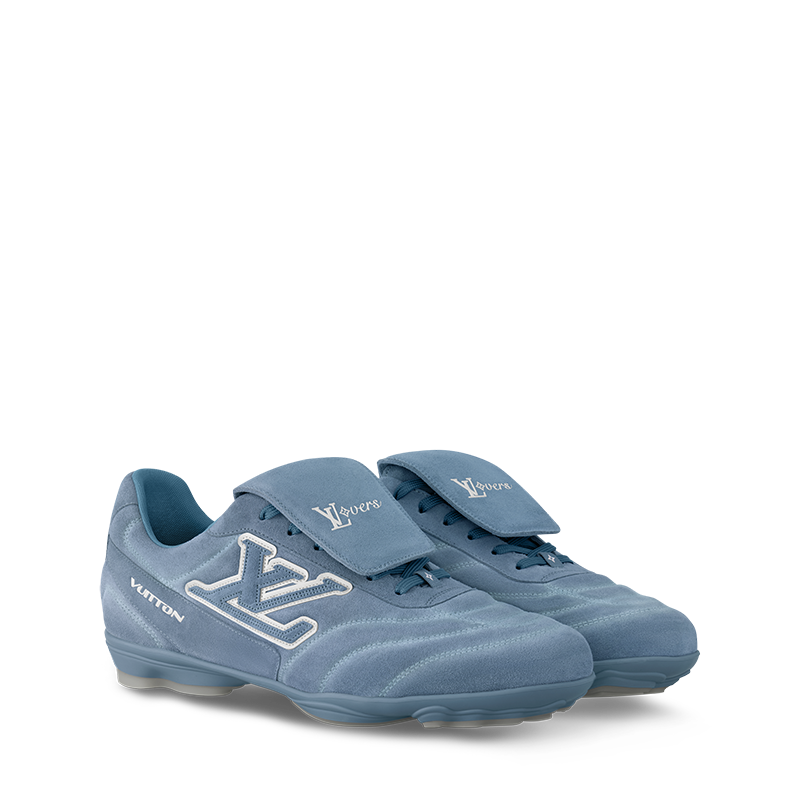 The LV Footprint Soccer sneaker is the first soccer-inspired sneaker created by Pharrell Williams. Made of suede calf leather with a distinctive faded effect, its streamlined design is emphasized by the dynamic LV Initials on the side. The removable tongue sports the Lvers United emblem inspired by football teams, while the rubber footprint outsole incorporates several House signatures.