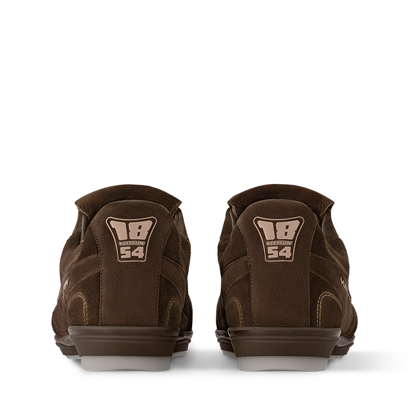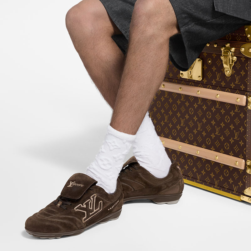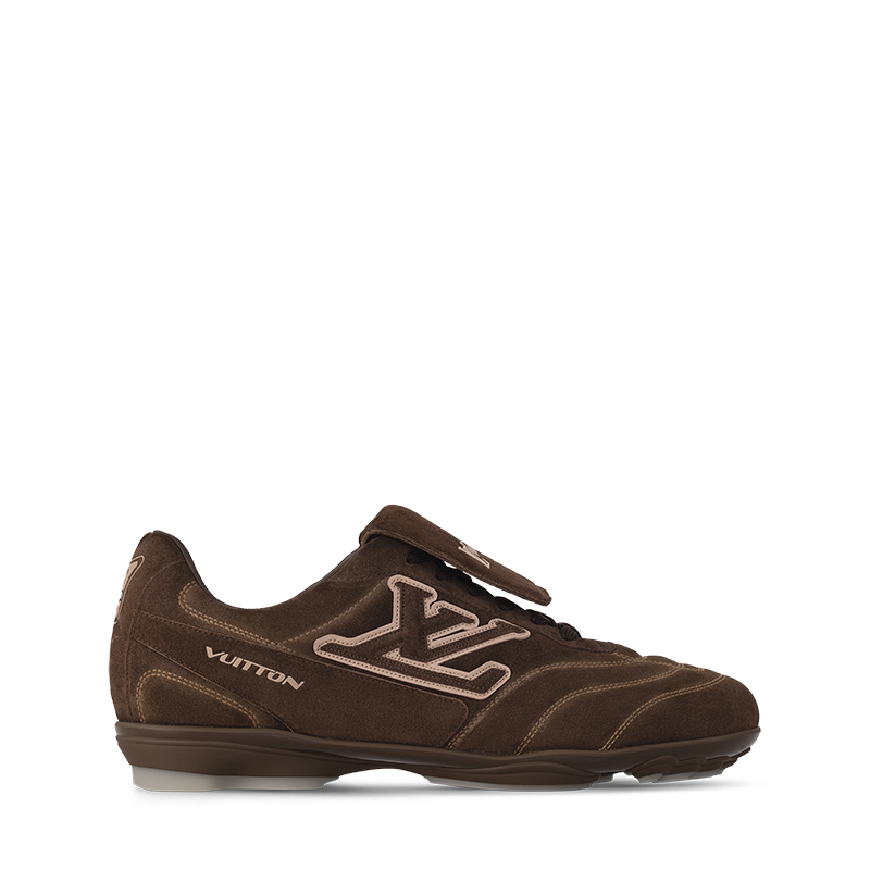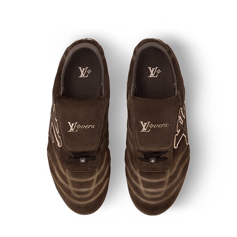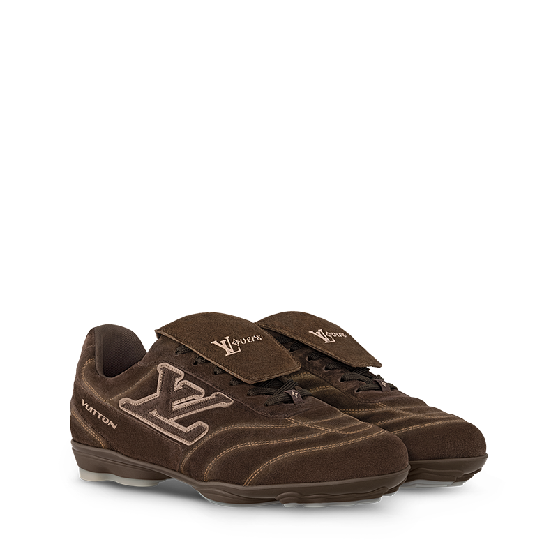 The LV Footprint Soccer sneaker is the first soccer-inspired sneaker created by Pharrell Williams. Made of suede calf leather with a distinctive faded effect, its streamlined design is emphasized by the dynamic LV Initials on the side. The removable tongue sports the Lvers United emblem inspired by football teams, while the rubber footprint outsole incorporates several House signatures.