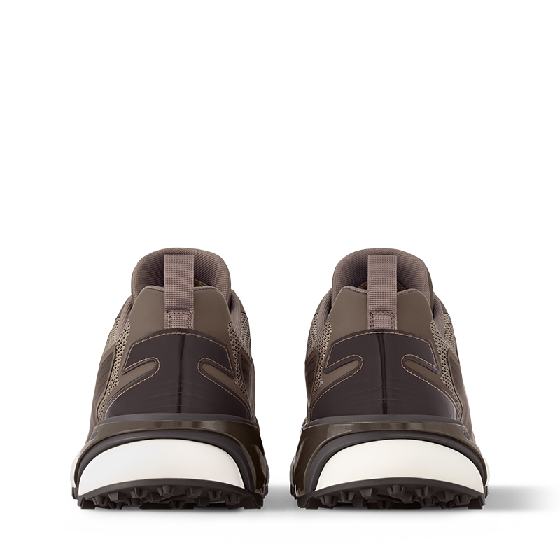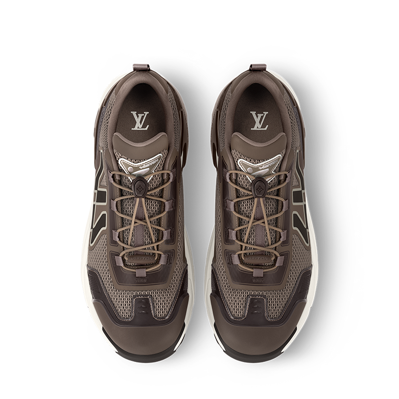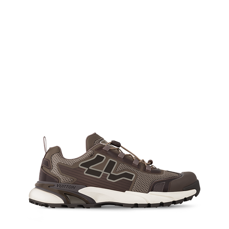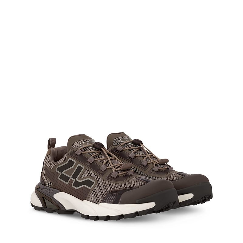 The LV Runner Tatic sneaker is revisited this season in a mix of technical materials and with details inspired by hiking shoes, in particular the quick lacing system with a Louis Vuitton signature stopper. An avant-garde interpretation of a running shoe, this model comes on an ultra-lightweight rubber outsole. A graphic LV is emblazoned on the side.