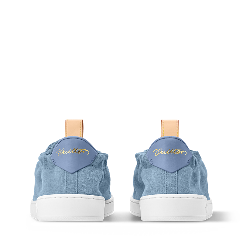 Ultra-soft suede calf leather complements the design of the LV Soft sneaker. This model has a modern construction, combining laces with an elasticized heel for an easy, slip-on fit. It is finished with refined details, including a back loop and LV Initials label in natural leather and a Vuitton signature created by Pharrell Williams at the back.
