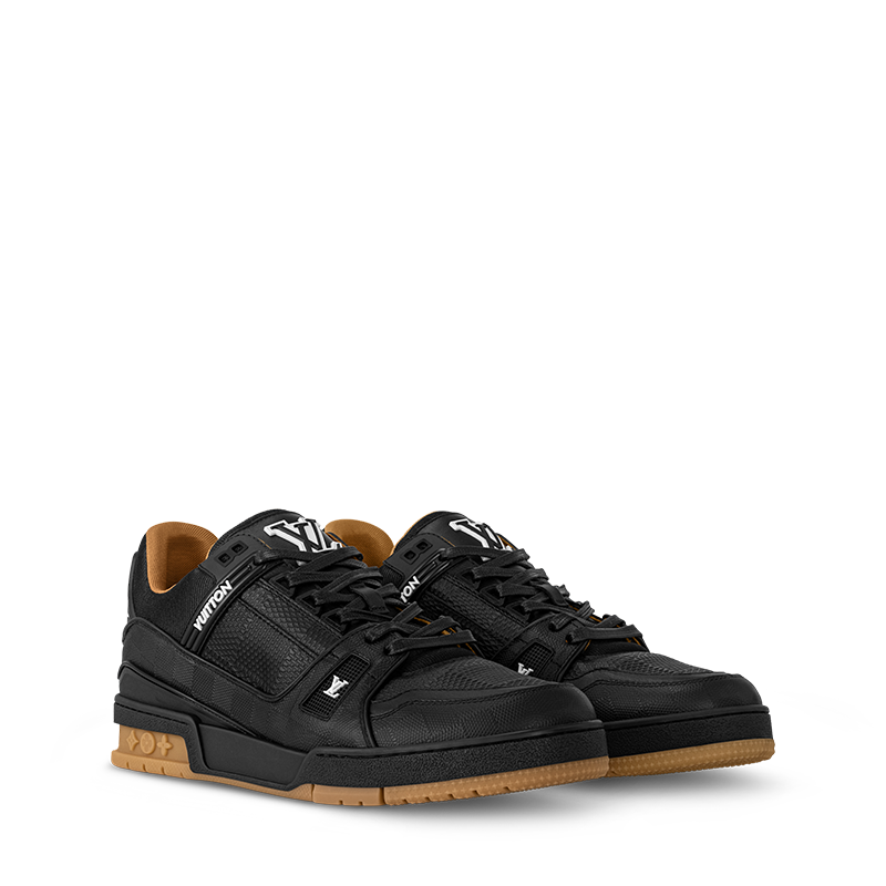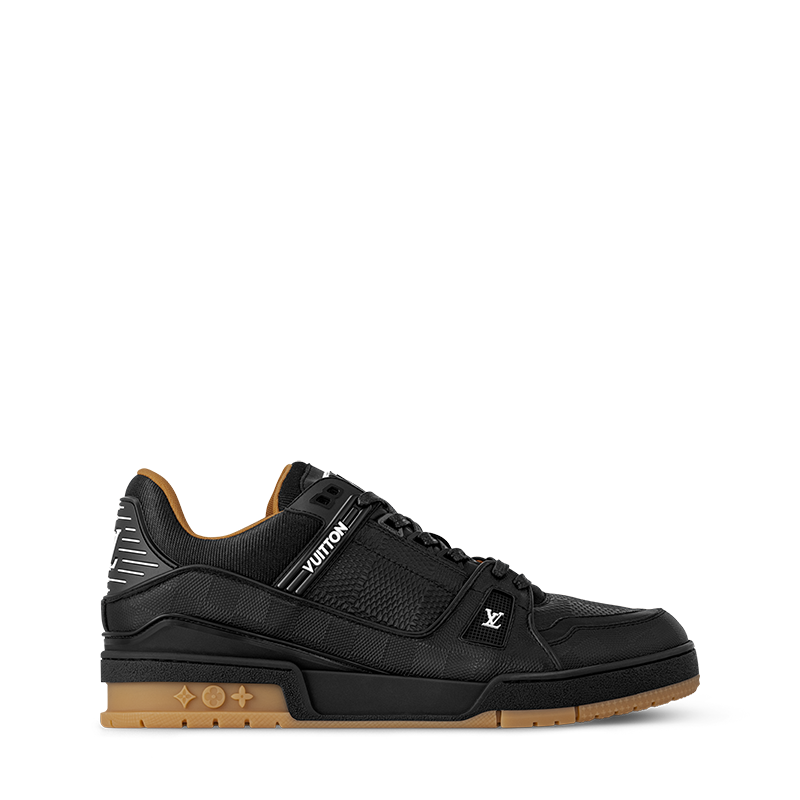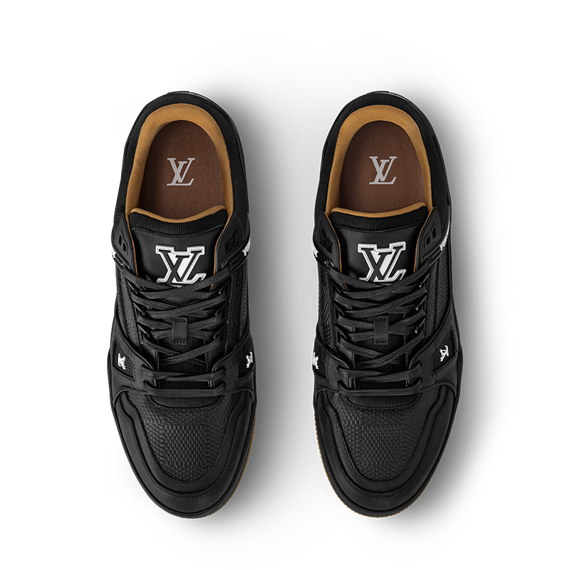This refined iteration of the iconic LV Trainer sneaker is crafted from soft calf leather embossed with the historic Damier pattern. Leather laces with metal tips further enhance this model, which also features contrasting LV Initials and Vuitton signatures. The technical rubber outsole is decorated with three Monogram Flowers.