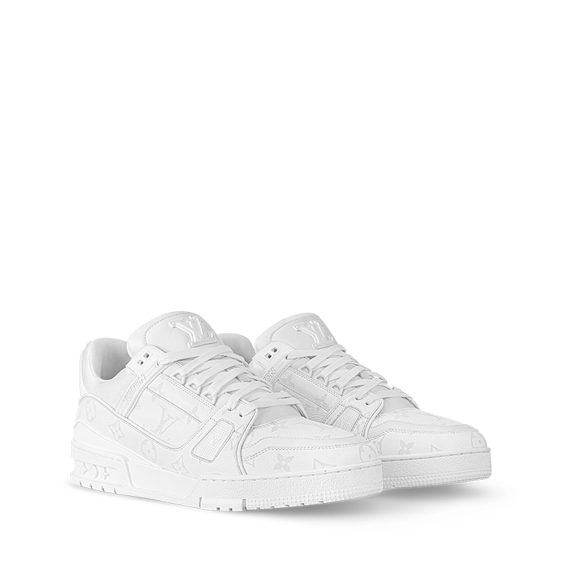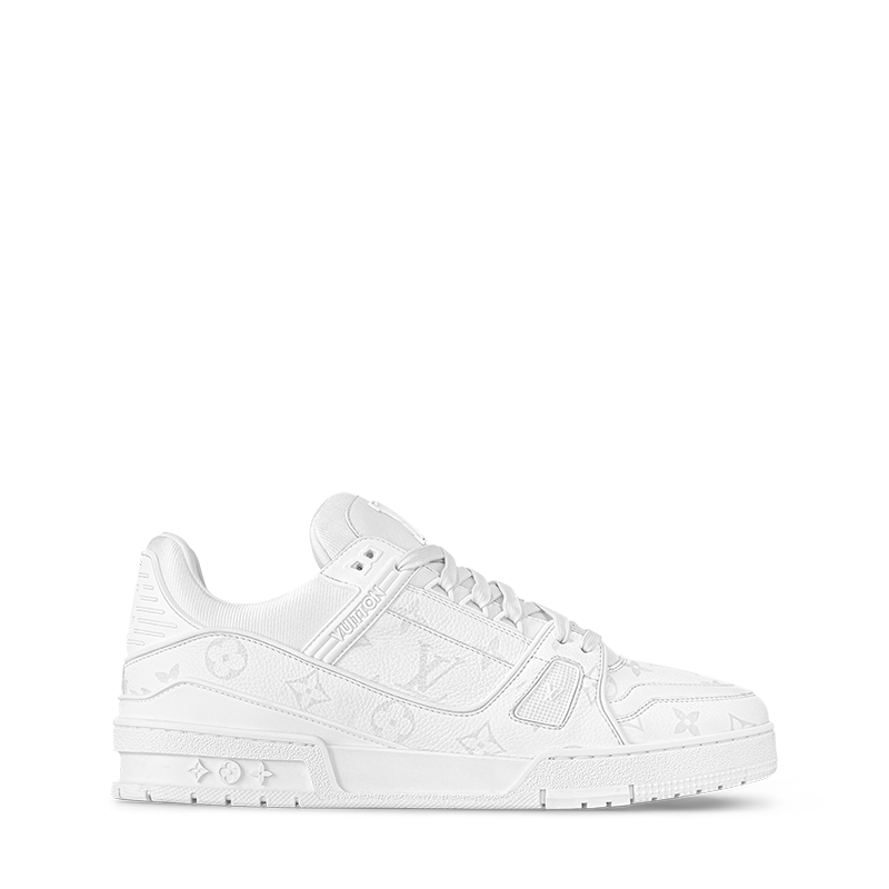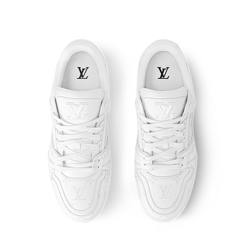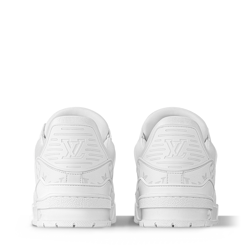 The LV Trainer sneaker is reinterpreted this season in a smart monochrome version in grained calf leather partially decorated with the Monogram pattern. Originally designed by Virgil Abloh, this iconic model was inspired by vintage basketball sneakers. It is notable for its rubber signatures and elaborately constructed upper, made of more than 80 pieces