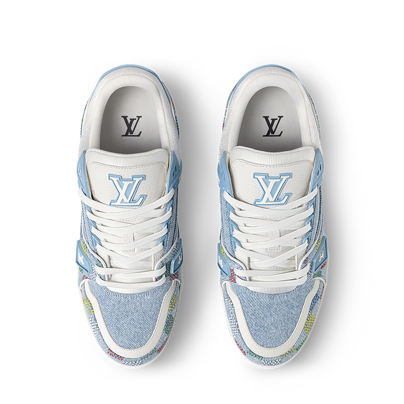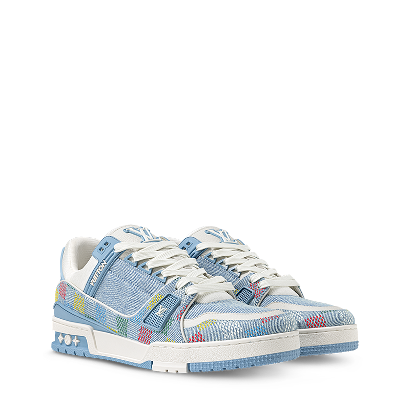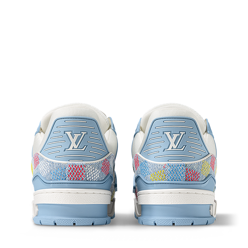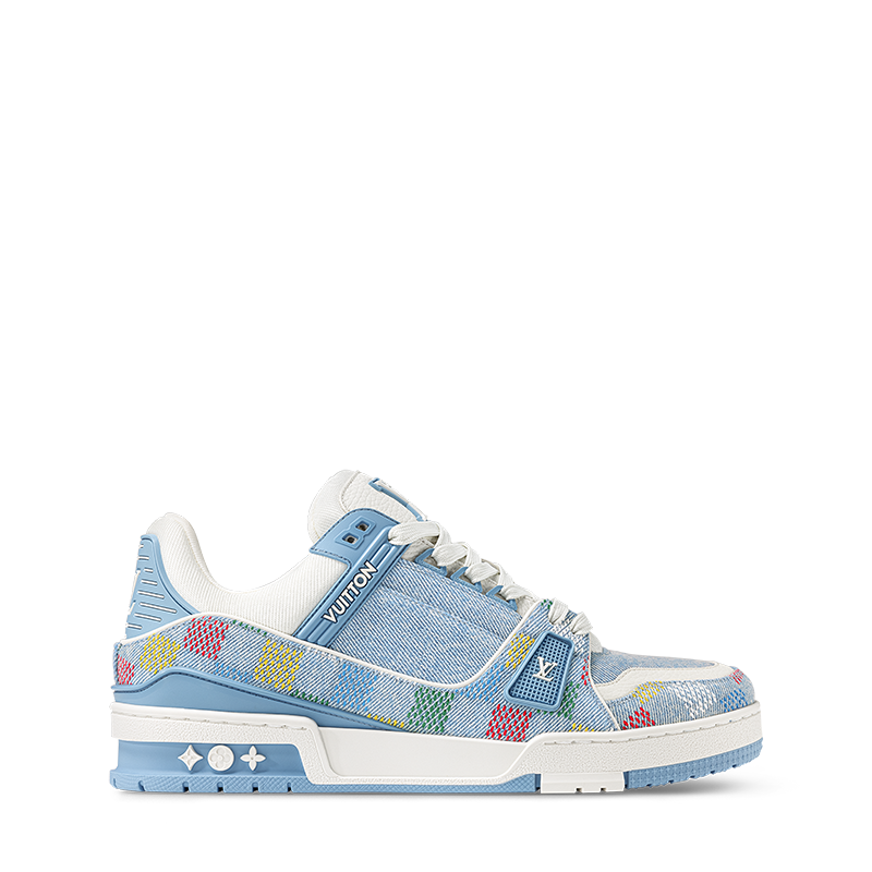 This edition of the LV Trainer sneaker comes in denim printed with the Lvers Damier pattern designed by Men’s Artistic Director Pharrell Williams. The upper is complemented by rubber Vuitton and LV Initials signatures, while the outsole bears three Monogram Flowers. Originally designed by Virgil Abloh, this cult model was inspired by vintage basketball sneakers.