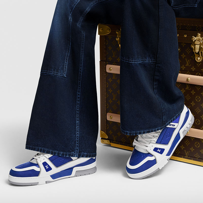This colorful edition of the LV Trainer Sneaker in grained calf leather is part of the LV Colormania capsule collection. The vibrant palette highlights this model’s elaborately constructed upper, which references vintage basketball sneakers. This cult design is complemented by rubber signatures, including the LV Initials on the upper and Monogram Flowers on the outsole.
