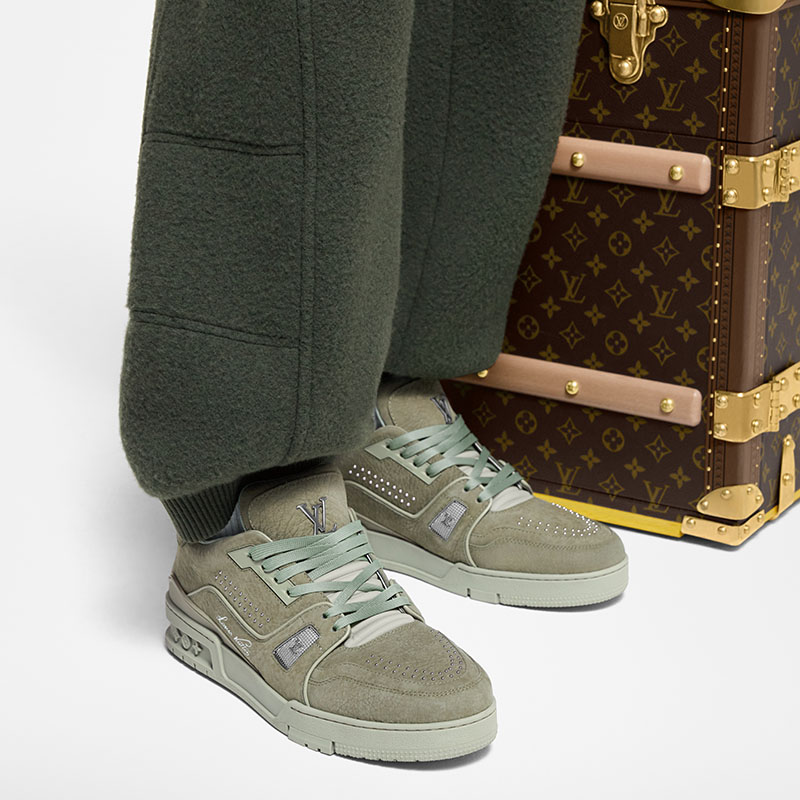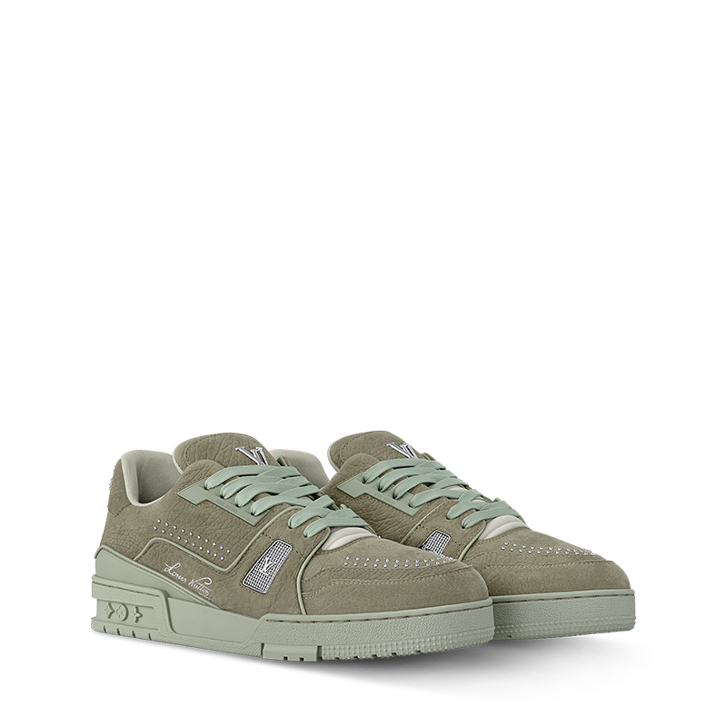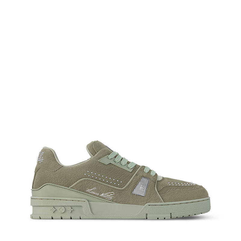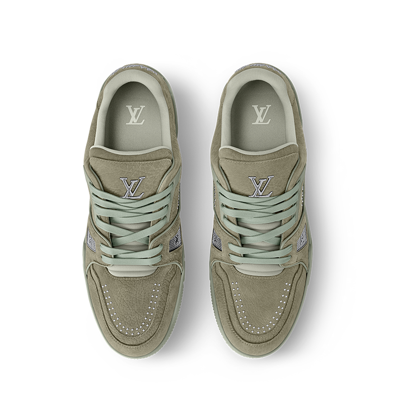 This colorful iteration of the LV Trainer sneaker is crafted from grained nubuck buffalo leather with metal details, including tiny studs. Its upper bears the Louis Vuitton script signature on the side and the #54 emblem at the back, referring to 1854, when the House was founded. The rubber outsole is matched to the upper for a stylish look.