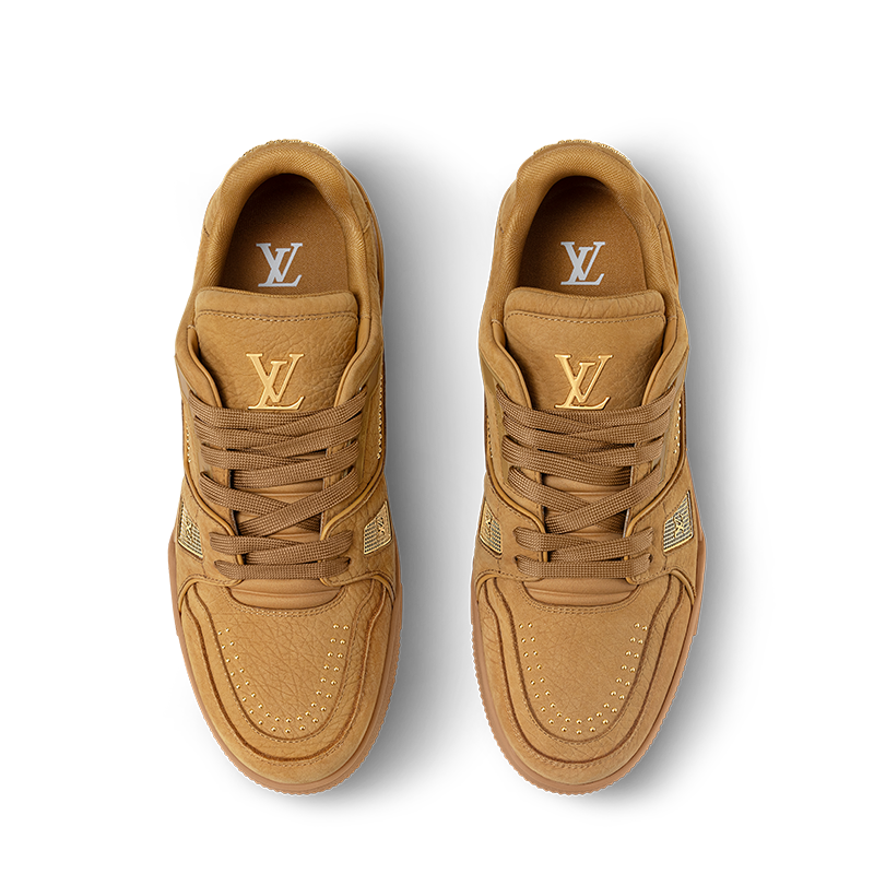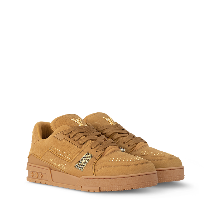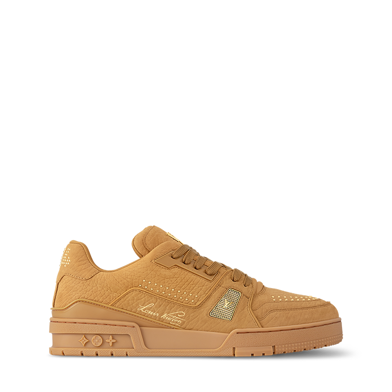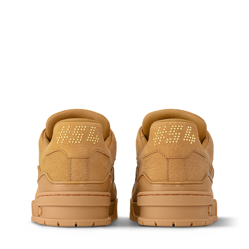 This colorful iteration of the LV Trainer sneaker is crafted from grained nubuck buffalo leather with metal details, including tiny studs. Its upper bears the Louis Vuitton script signature on the side and the #54 emblem at the back, referring to 1854, when the House was founded. The rubber outsole is matched to the upper for a stylish look.