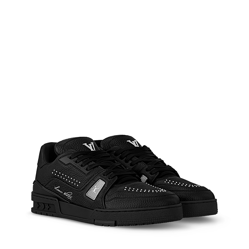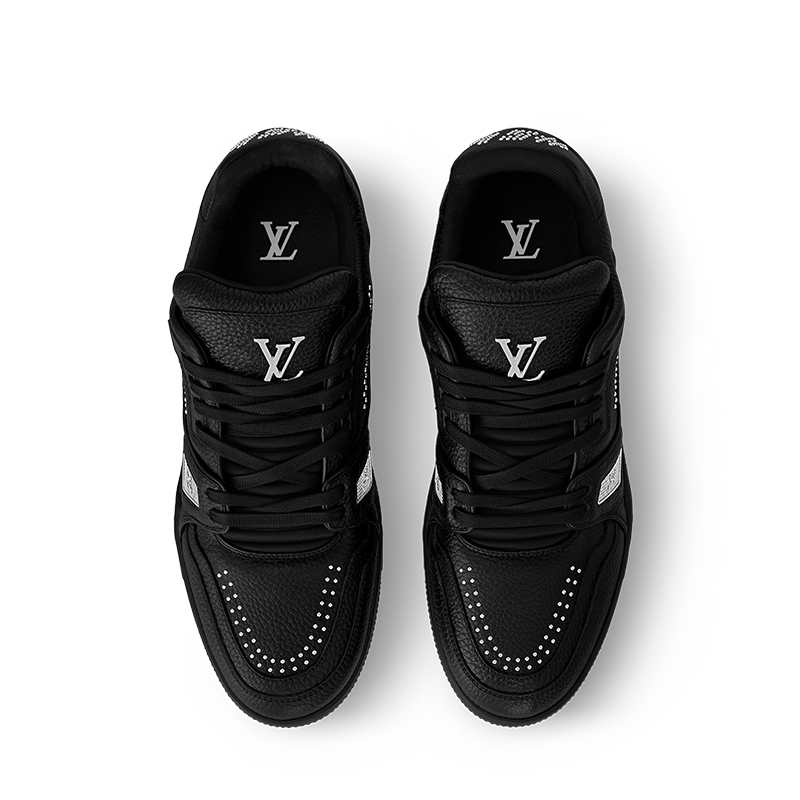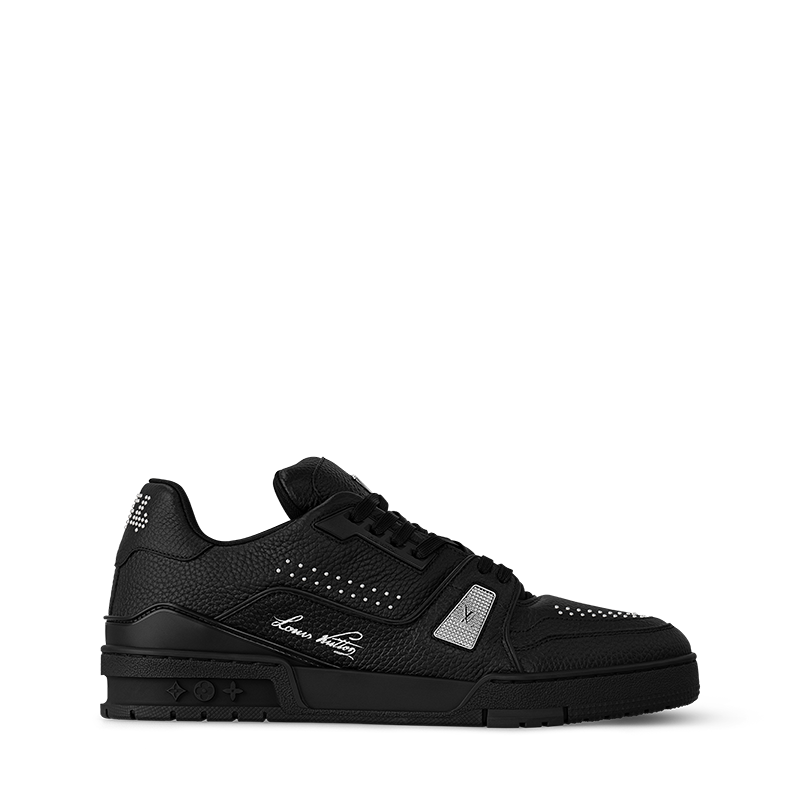 The iconic LV Trainer sneaker is revisited in grained calf leather with details in silver-toned metal, including tiny studs and the LV Initials. Originally designed by Virgil Abloh, this model was inspired by vintage basketball sneakers. It bears the Louis Vuitton script signature on the side, while the technical rubber outsole is decorated with Monogram Flowers.