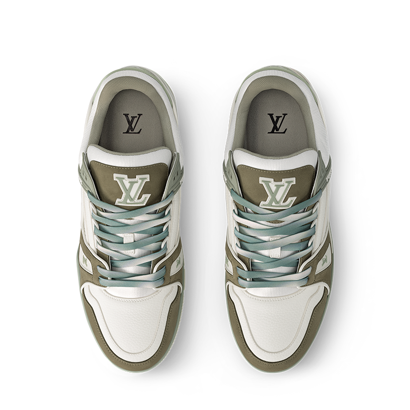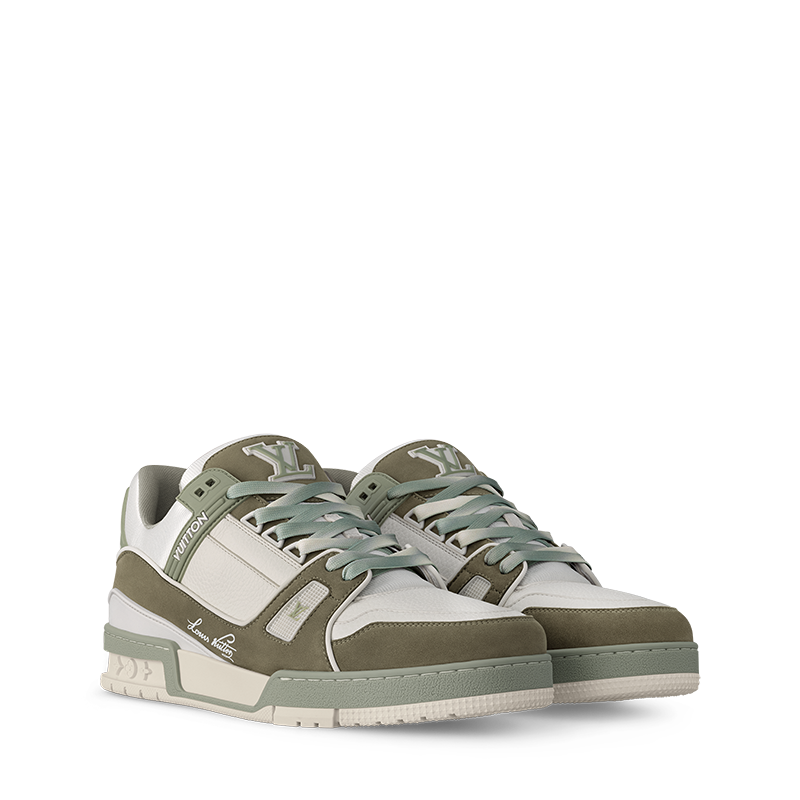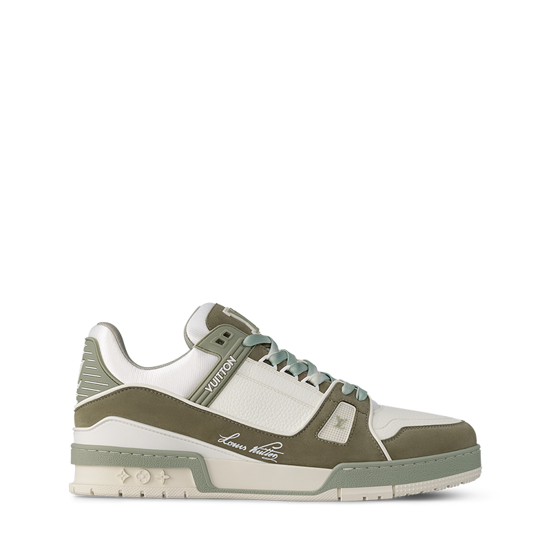 This version of the LV Trainer sneaker combines nubuck and grained calf leather in a smart, two-tone color palette that highlights its elaborately constructed upper. This iconic model was originally designed by Virgil Abloh and bears his Louis Vuitton script signature on the side. Inspired by vintage basketball sneakers, it comes on a technical outsole in two-tone rubber.