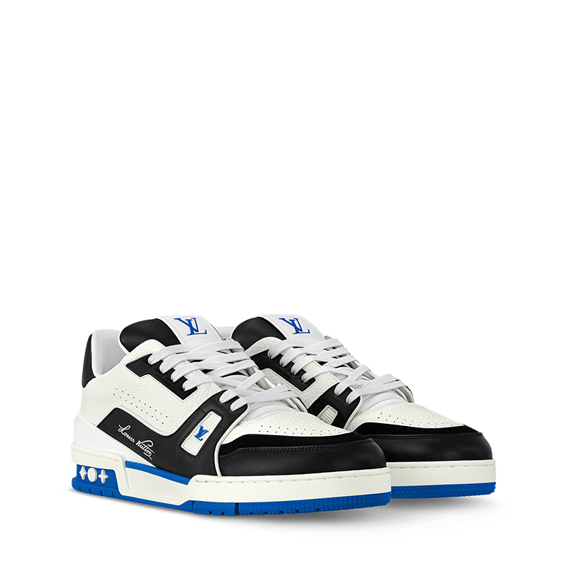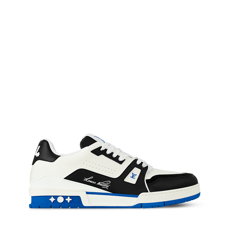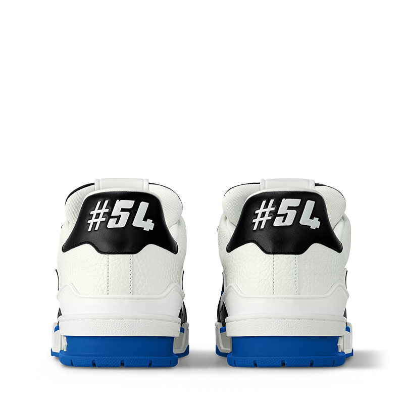 The LV Trainer sneaker comes in grained calf leather and a black and white palette illuminated by touches of color. This iconic model was designed by Virgil Abloh, who drew inspiration from vintage basketball sneakers. It is notable for its rich details, including Louis Vuitton in script lettering and the #54 signature, referring to 1854, when the House was founded.