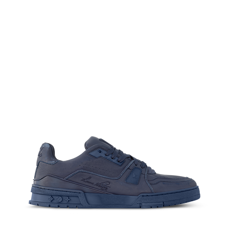 This monochrome iteration of the cult LV Trainer sneaker comes in calf leather with a subtly aged, vintage look. The upper is complemented by tone-on-tone laces and rubber details, as well as a Louis Vuitton script signature on the side. The technical rubber outsole, which is matched to the upper, is decorated with three Monogram Flowers.